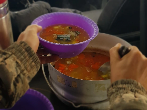 한 시간이 넘었는데도 아저씨가 돌아오질 않는다. 오래 있으니 발이 너무 시려서 땅 위로 갔다. 아저씨가 이제 좀 왔으면 좋겠다. 그 생각을 하니깐 아저씨가 오신다. 푸르공에 잽싸게 들어가 밥을 먹었다. 꽁치와 감자, 토마토, 양파를 넣은 수프와 식빵이다. 이걸 하려고 한 시간 동안 있었나? 한국말로 농담 삼아 투덜거렸다. 보기에는 '아즈만' 밥 같았지만 먹으니 맛은 괜찮다. 배가 심하게 고파서 그런 건 아니겠지? 후식으로 엄청나게 단 빵과 홍차까지 마셨다.