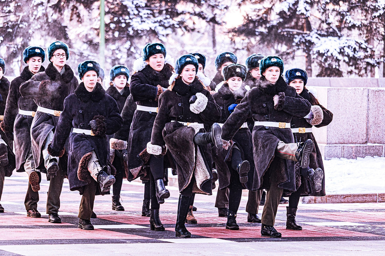 추운 날씨에 제식 연습을 하는 어린 군인들. 맘이 짠했다.