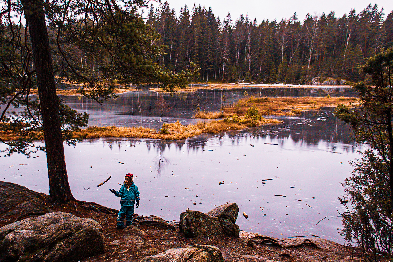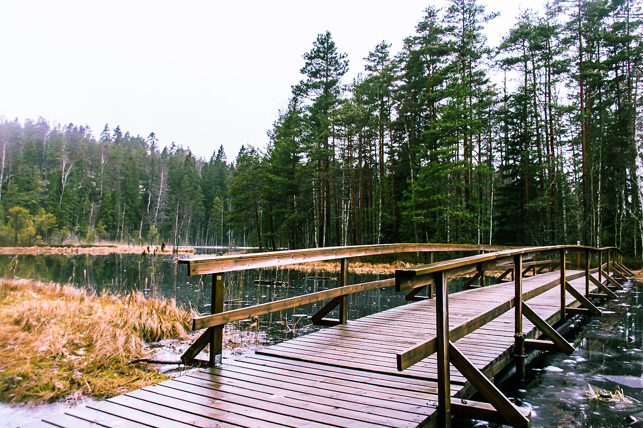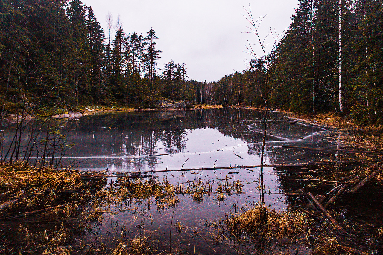 안내소를 나와 나무에 박힌 주황색 안내표시를 따라 걸었다. 겨울이라서 사람이라곤 나밖에 없었다. 순록이나 한번 봤으면 좋겠다. 안개 낀 길을 따라 걷는데 공기가 상쾌하다. 코에 있는 코딱지도 다 떨어질 듯한 맑은 공기이다. 걷는건 천천히 했다. 며칠 전 온 것 같은 눈들이 얼어서 빨리 걸을 수가 없었다. 표시가 갈리는 곳으로 왔다. 빨강, 파랑, 노랑의 표시가 있었는데 빨간색이 가장 짧으니 그곳으로 걸었다. 걸으면서 느낀 건 이곳에는 호수가 많다. 나중에 알게 된 사실이다만 온 나라에 호수가 바글바글하다고 한다.