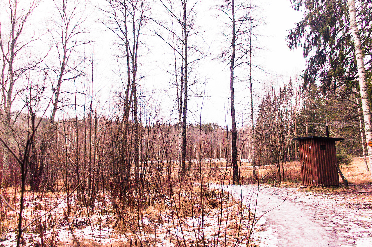 걷다가 간이 화장실처럼 생긴 건물이 보였다. 문을 열었는데 화장실이 맞다. 구멍 밑으로 변들과 나무 톱밥들이 섞여있었다. 이상한 것은 간이 화장실인데 악취가 전혀 나지 않았다. 나무의 그윽한 향이 나서 오히려 좋았다. 역시 청정의 나라 간이 화장실답다.