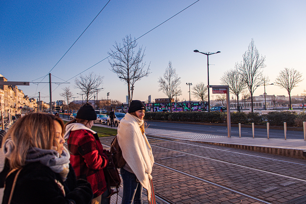 보르도의 아침. 트램정류장에는 출근하는 사람들로 북적인다.