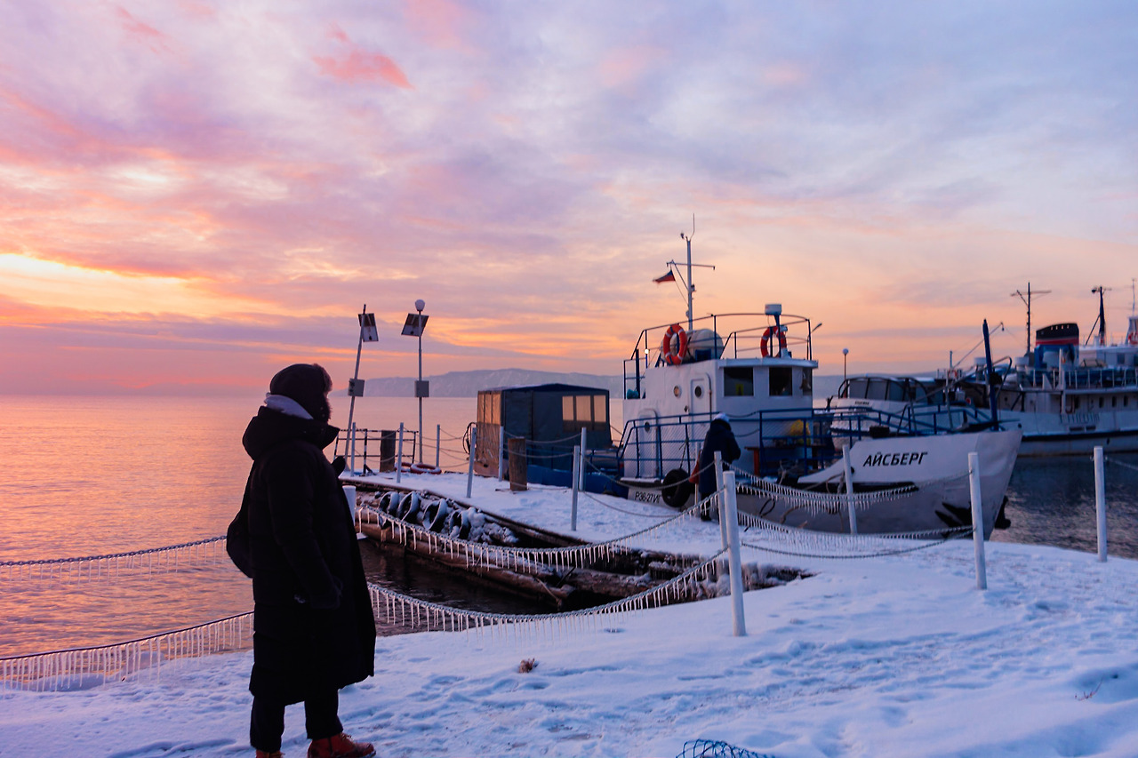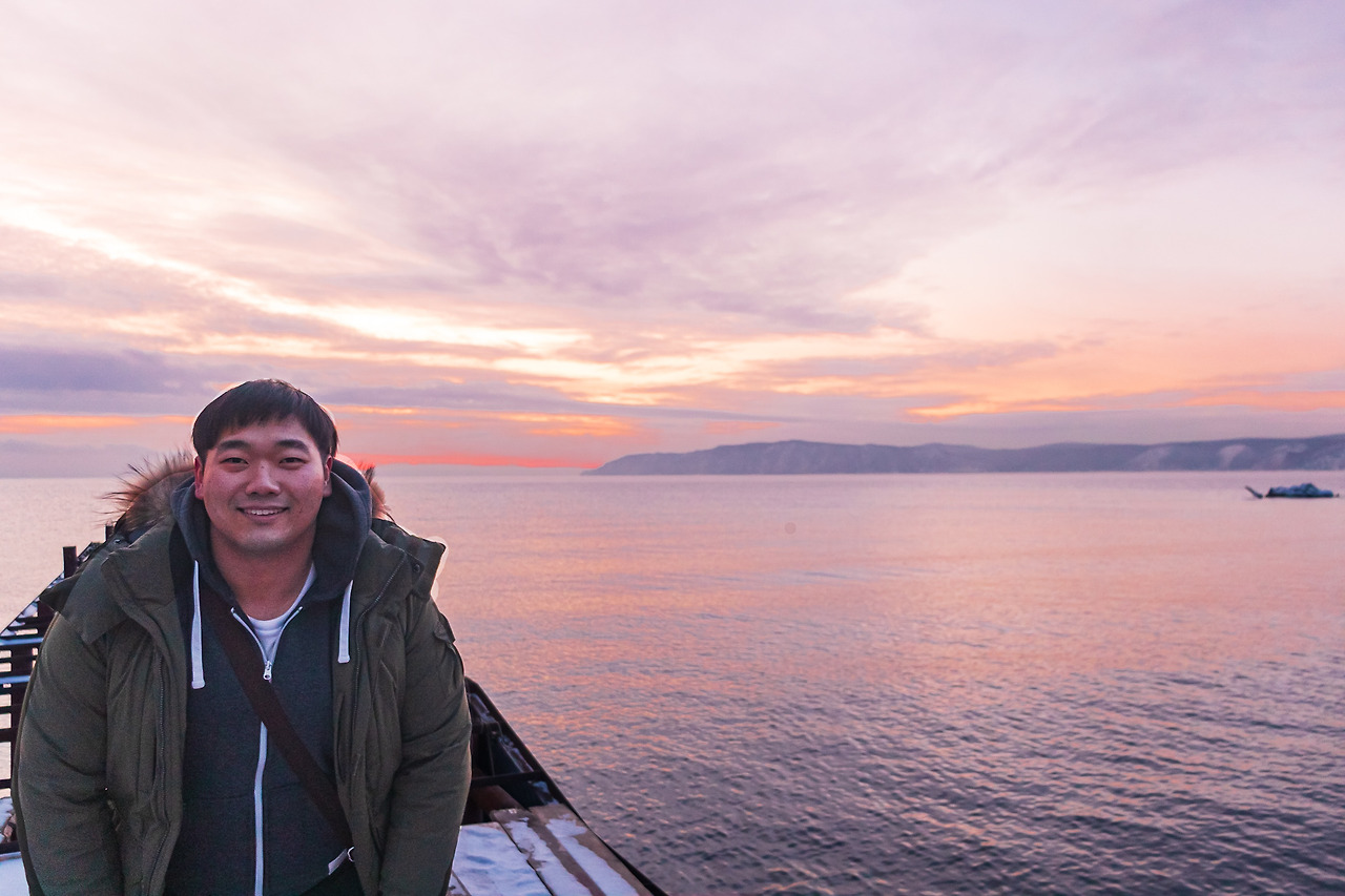 해가 구름에 끼여 제대로 된 석양을 보지 못했다. 하지만 그와 나는 호수를 걸어 다니면서 서로 사진을 찍어줬다. '여자랑 이걸 했어야 했는데...' 도익 씨한테는 바이칼 호수가 예쁘니 이런 아쉬운 마음이 생긴다. 너무 추워서 우리는 한 시간도 채 안돼서 이르쿠츠크로 돌아가는 밴을 탔다. 이르쿠츠크로 돌아와 그가 추천해준 기사식당에서 밥을 먹었다. 점심때 온 식당과 비슷하다. 늦게 와서 음식의 종류는 적었지만 맛은 괜찮다.