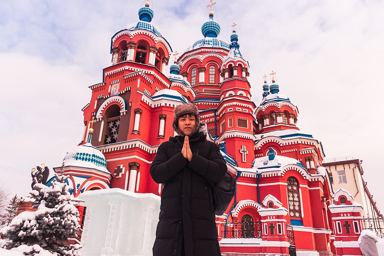 성당은 굉장했다. 진한 빨간색의 벽과 청록색의 지붕, 그리고 그위로 덮인 눈은 마치 겨울왕국의 성당 같은 느낌을 주었다. 성당의 색깔에 매료되고서 안으로 들어갔다. 신성한 음악이 나를 반기고 금색의 내부가 마음을 홀린다. 누구든지 이곳에 오면 기독교인이 될 법한 신성함이다. 아무런 생각이 나지 않았다. 옆에서는 아주머니가 무릎을 꿇고 기도를 절실히 하신다. 내가 신이라면 지금 이 순간 이 성당 때문이라도 그녀의 간절한 소원을 들어줄 것이다.