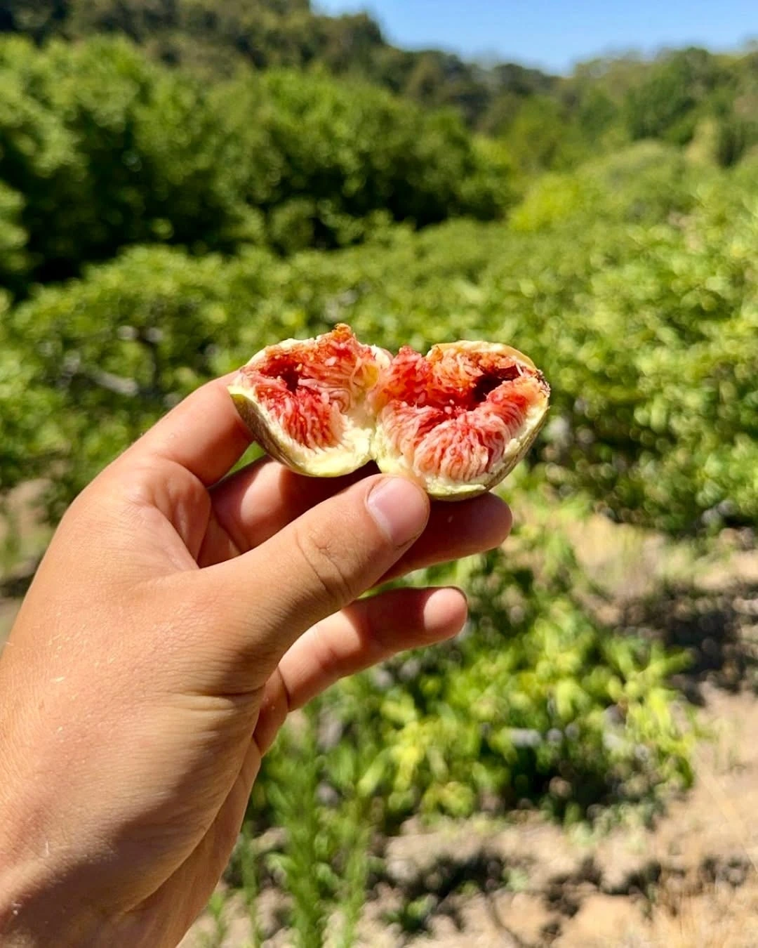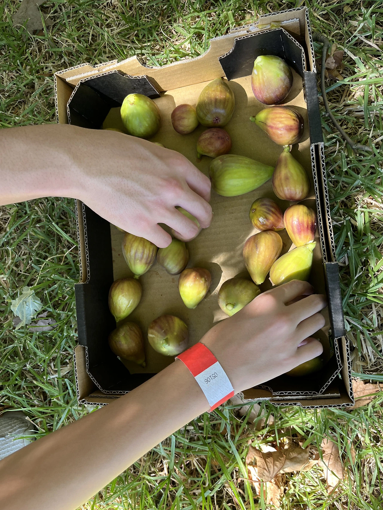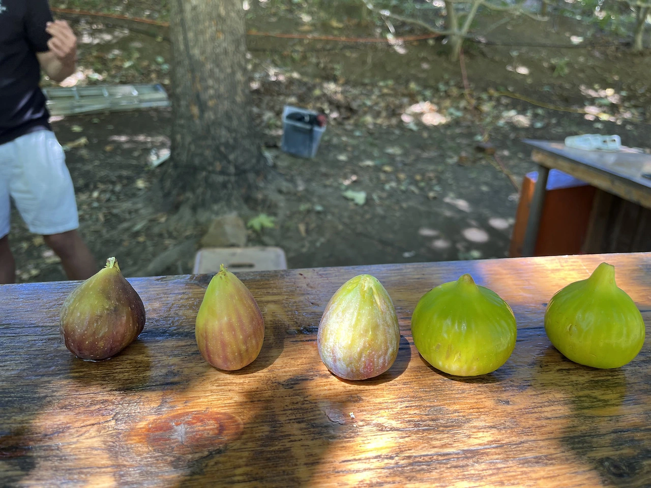 농장에서 가족들과 무화과를 갓 따서 먹는다.
