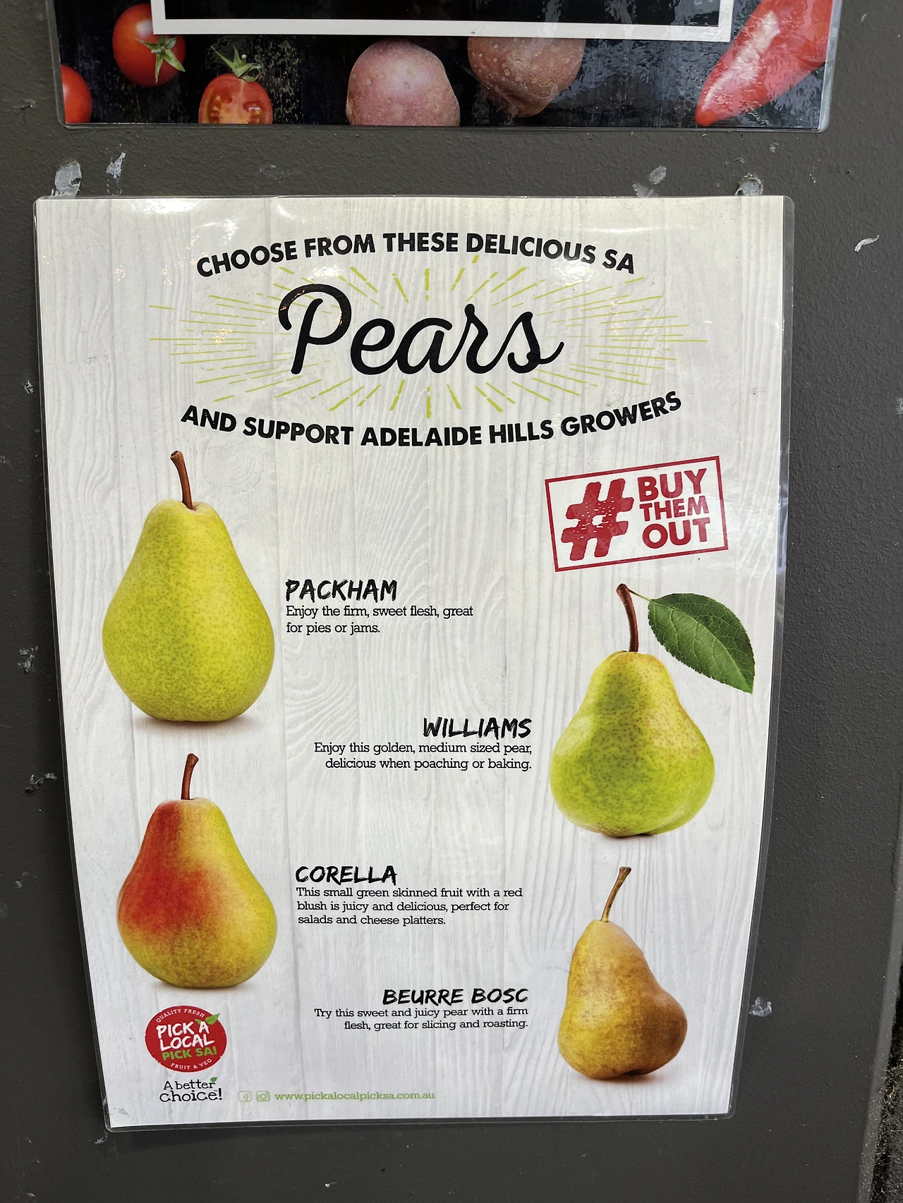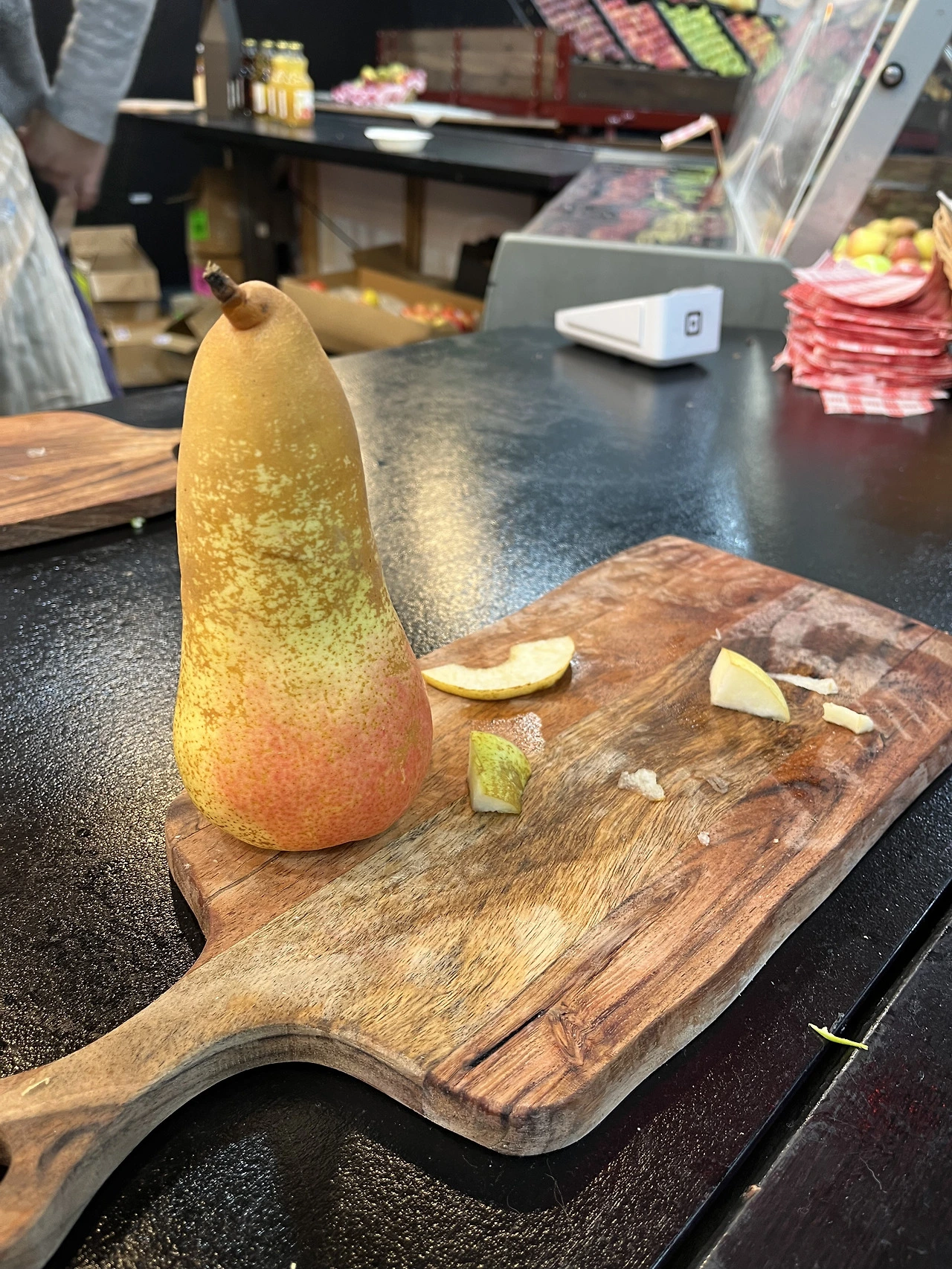 이곳 배의 식감은 한국 배의 것과 전혀 다르다. 갓 딴 배들은 딱딱하지만 이내 곧 물러진다. 무르며 더 달아지긴 하지만, 갈아 만든 배 음료를 만들 정도의 과즙은 없다. 이쯤 되면 'Pear'와 '배'를 같은 과일로 두는 것에 물음표를 던져도 될 것 같다.