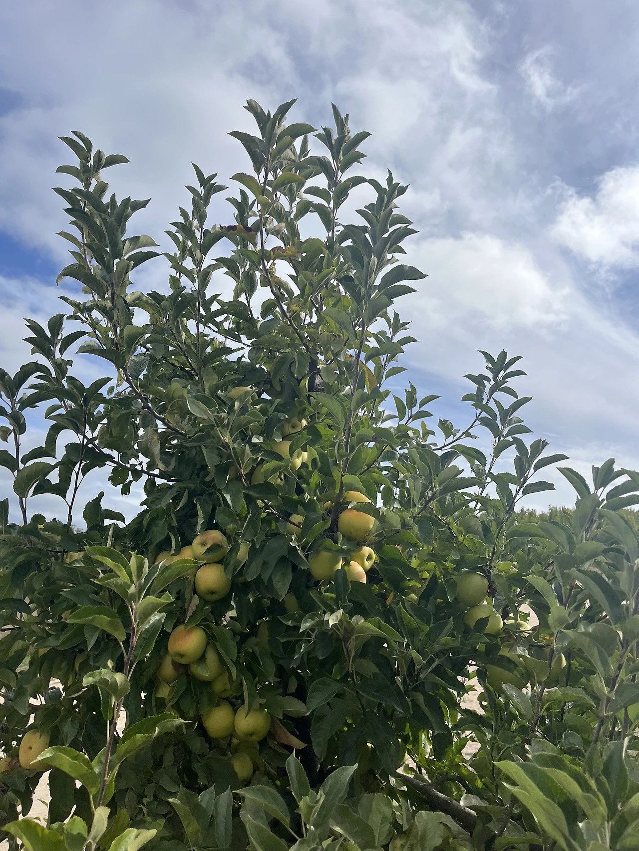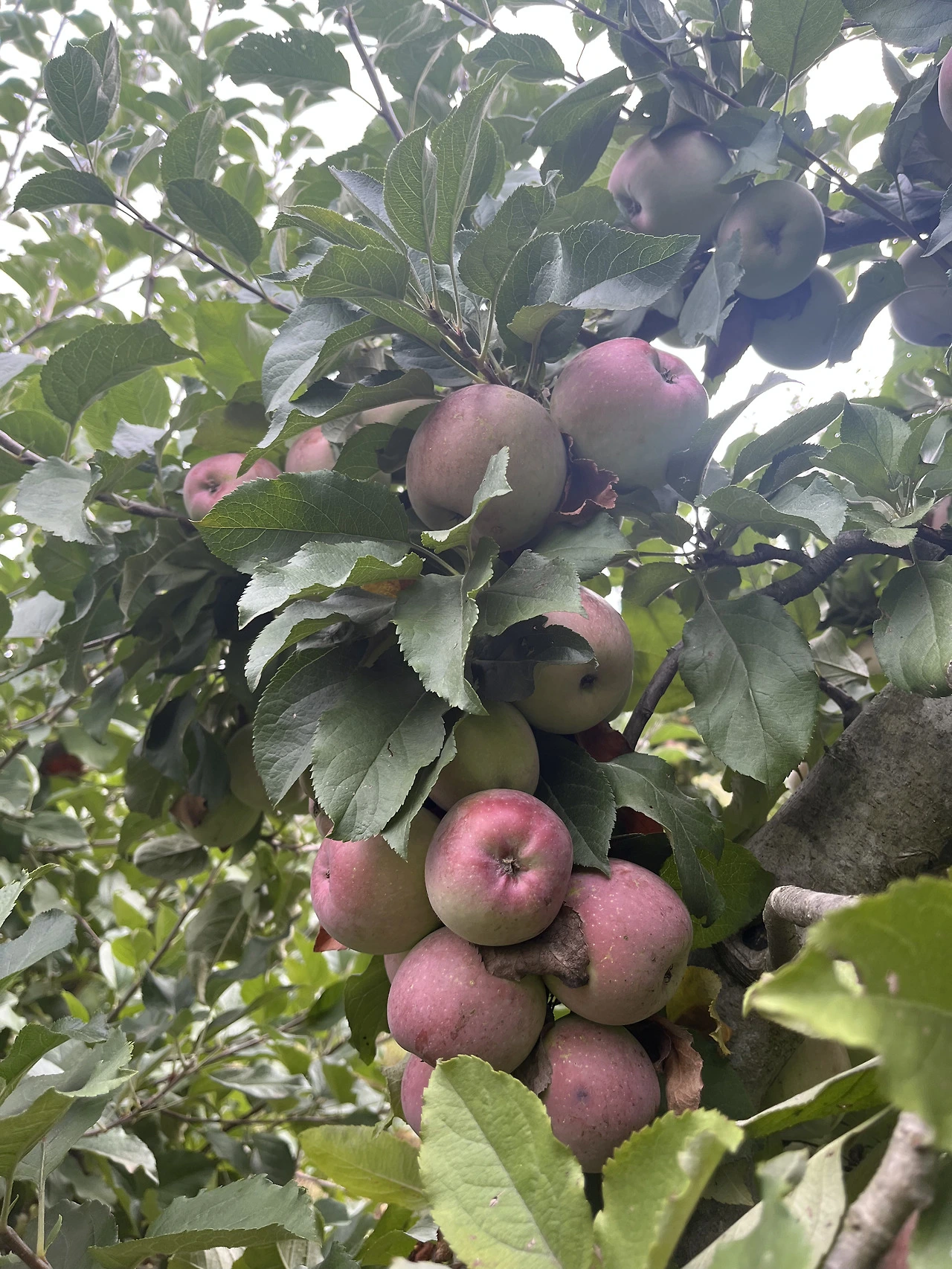 후지 사과 고랑에 도착하였다. 앗 그런데, 아직 절정기가 아니었다. 이제 막 붉게 변하고 있는 사과들. 딸까 말까 고민하게 만드는 사과들이 더 많았다. 그중 햇볕 받아 잘 자란 높은 쪽 사과들이 우리를 유혹했으나 손이 닿지 않자 아이들이 아이디어를 냈다. 아들이 딸을 어깨에 태웠고 올라탄 딸이 팔을 뻗어 사과들을 땄다. 사과에 진심인 가족이다. 것보다 그 순간에 우리는 얼마나 많이 웃었는지.