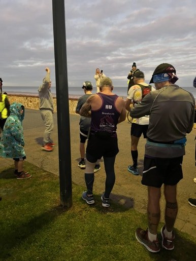 아직 어둡고 바닷바람 차가운 아침이었다. 전날 퍼스에서 마라톤을 하고 산 사람들, 777 그룹들은 지정된 옷과 배번이 달랐다. 아하 드디어 그들을 대면했구나!