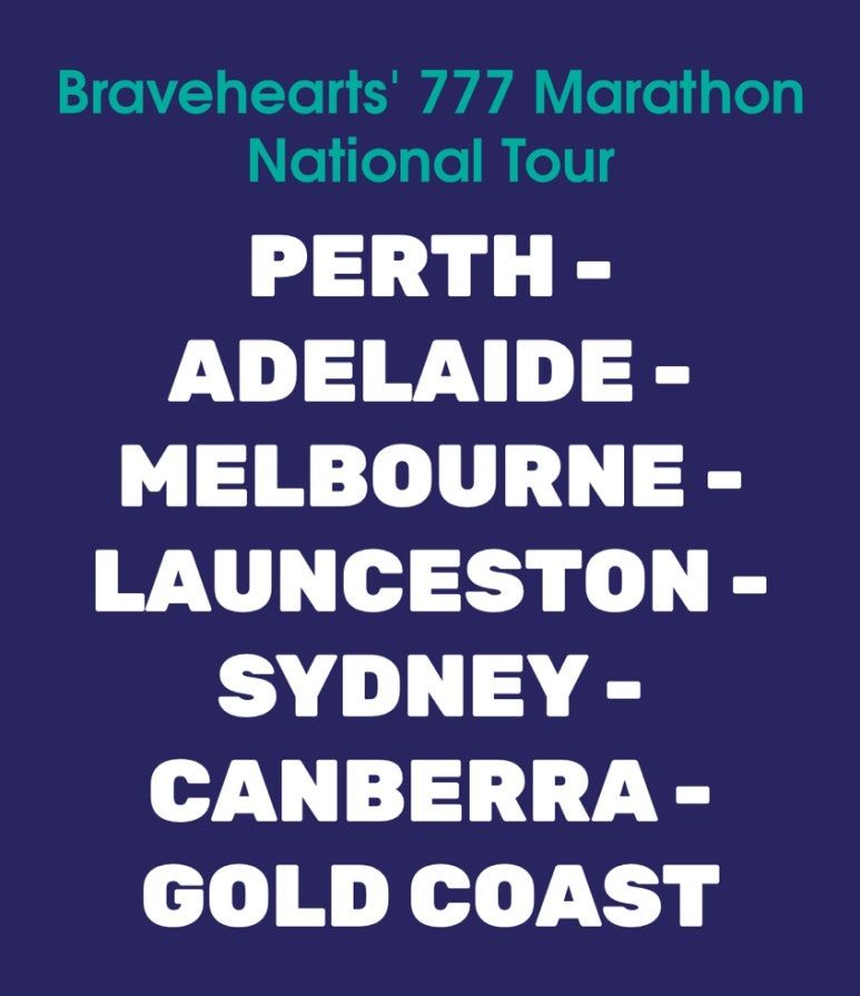 호주 내에서 7일간, 7개 주, 7 마라톤을 하는 것이라 한다. 호주 자체도 큰 대륙이어서 주 사이 이동은 비행기로 하며 7개 주요 도시에서 매일 마라톤을 하는 것이다.