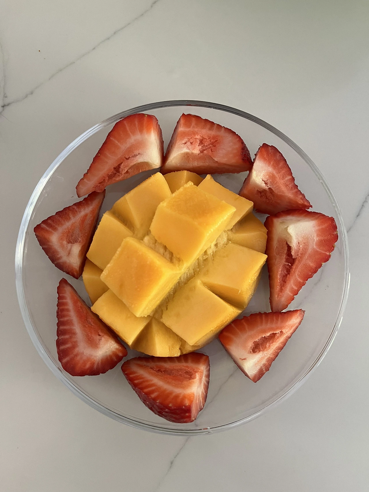 잘랐을 때의 향과 망고만의 특유 식감, 제철 과일 유혹에 못 이기는 척 들고 온다.
