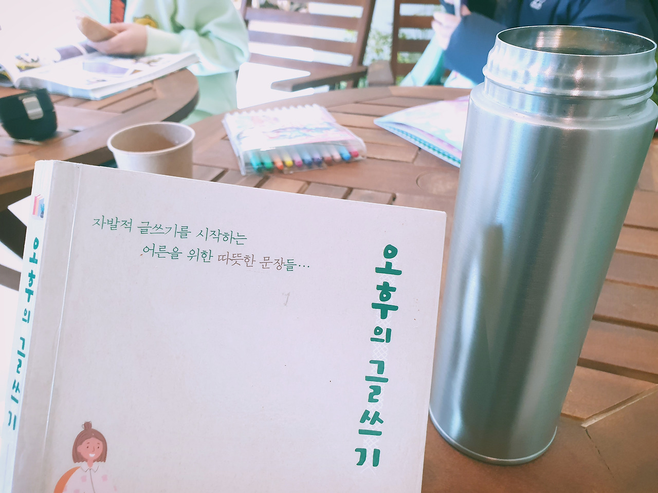 나의 아이들은 책을 보고, 색칠을 한다. 나도 책장을 넘긴다.