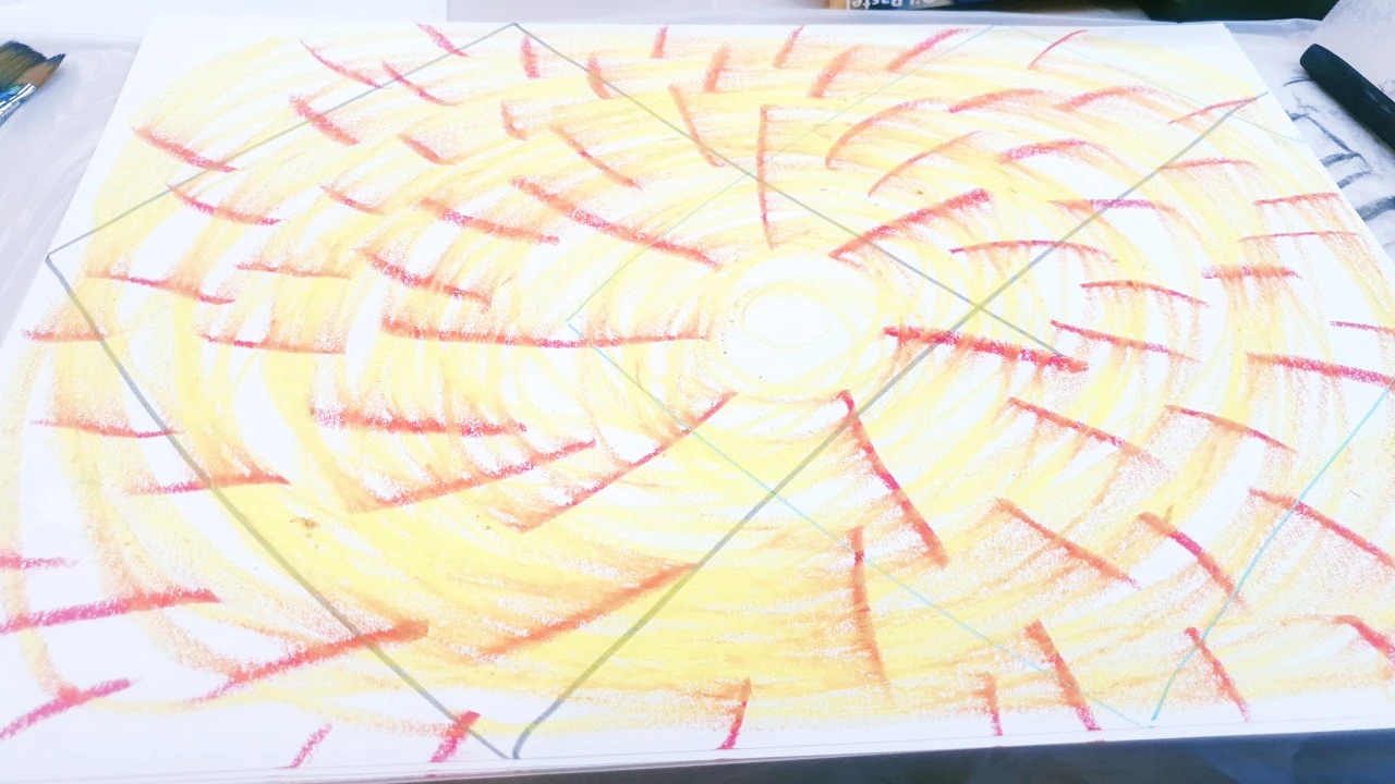 의도 없이 생각을 비우고 마음대로 긋고 문지르고 칠할 때는 움직임이 편안했는데 의도를 가지고 하려고 하니 긴장하는 내가 되었다. 이걸 어찌해야 하나.