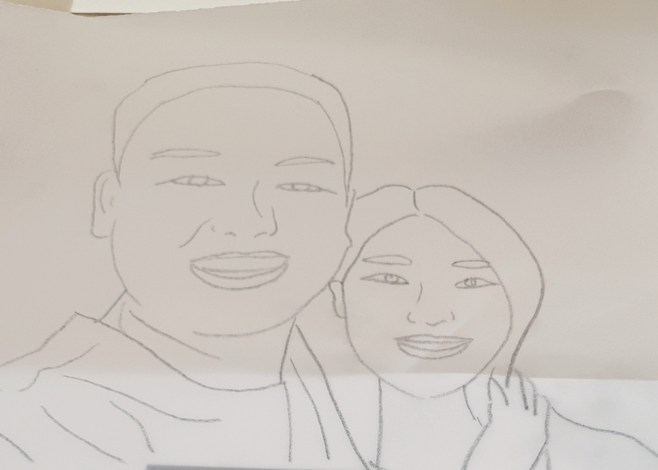 "남편과 제가 환하게 웃고 있는 모습을 드로잉 했어요."