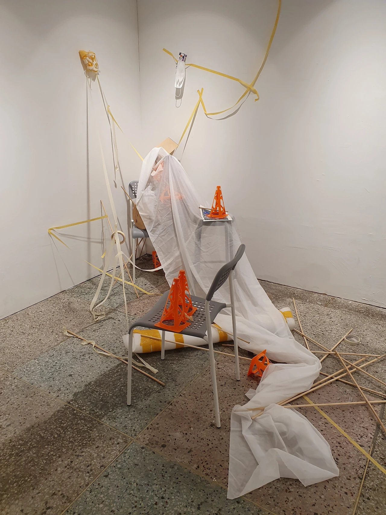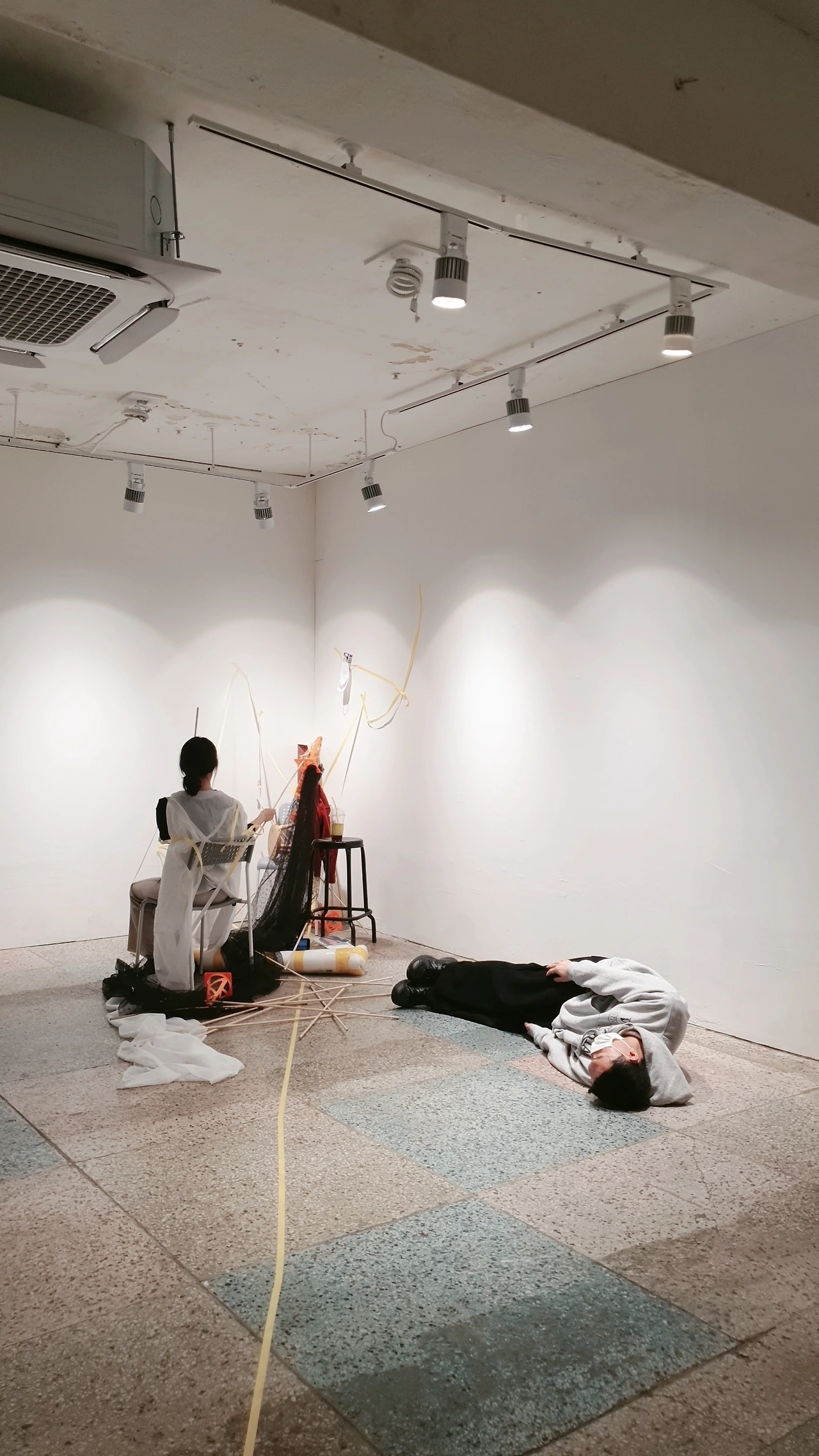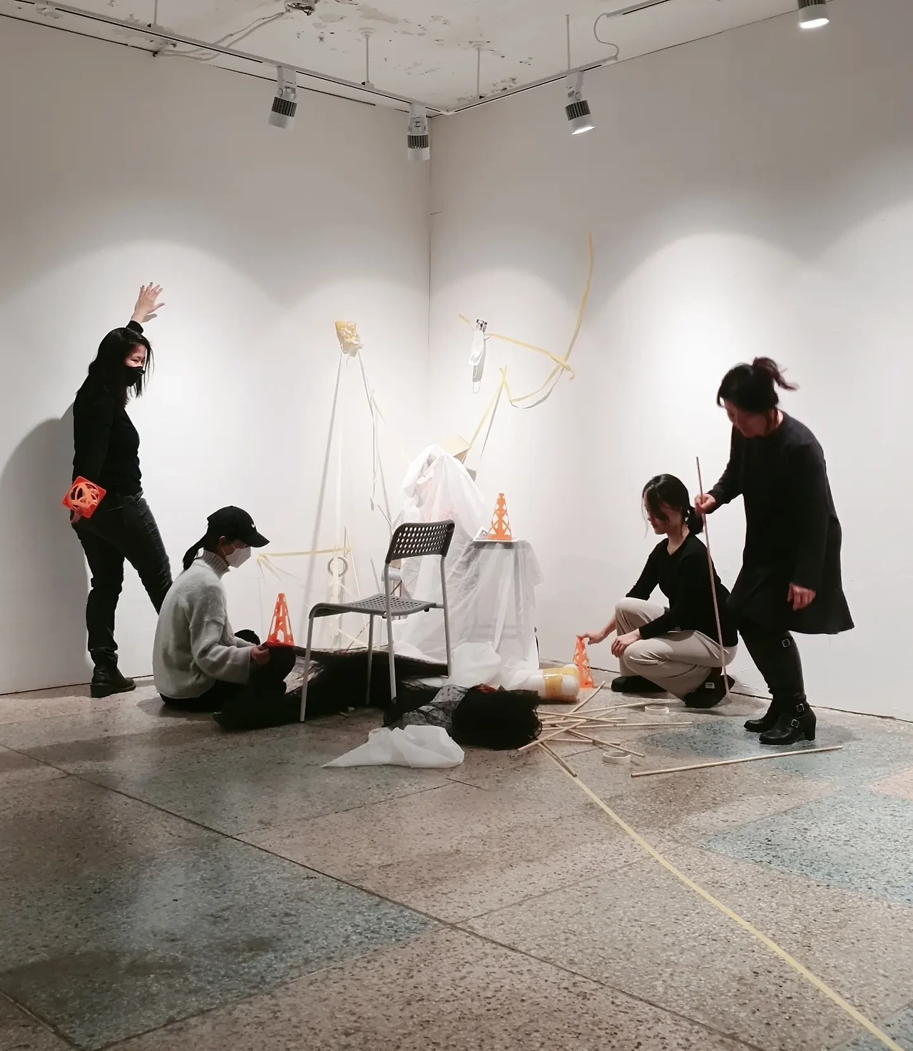 물건들이 쌓이고 꾸며지면서 한 사람씩 나아가 공간 속 작품이 되어보았다. 네 사람이 되면 한 명이 빠져나오고 또 다른 사람이 그 안에 들어가는 방식.