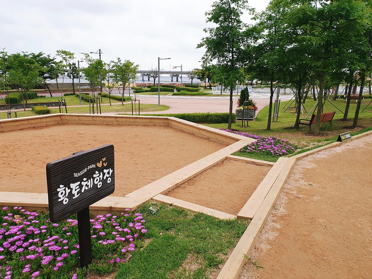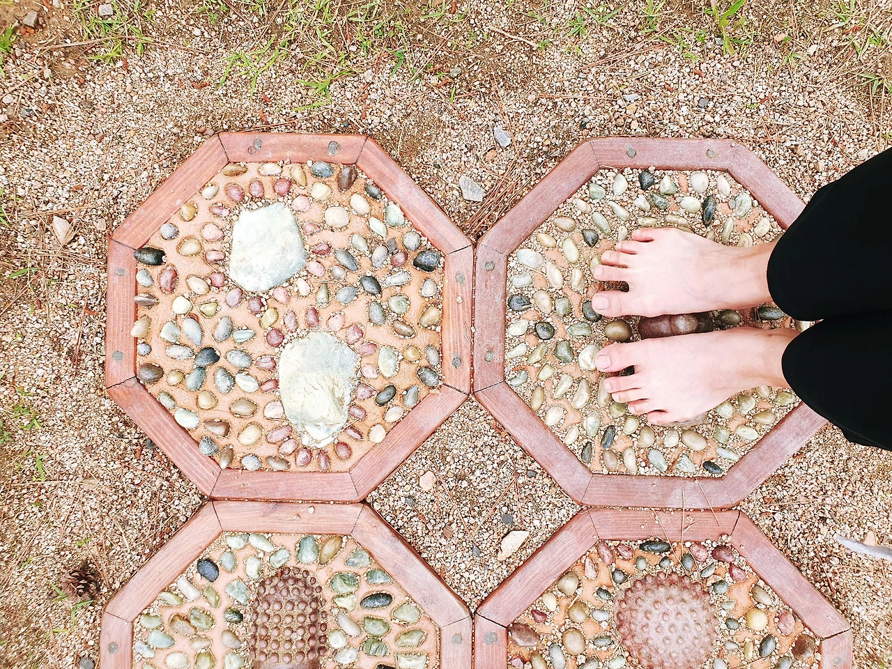 신발을 가지런히 벗어놓고 한 발 한 발 디디며 땅의 기운을 받는다. 까슬까슬함에 때때로 발이 아프기도 했지만 땅과 맞닿아있음이 기쁘고 벅차오른다. 저 멀리에는 바다가 보였다. 황토를 밟을 수 있는 곳에서는 황토를 밟고, 지압돌들이 깔려 있는 곳에서는 발을 꾹꾹 눌러 풀어냈다.