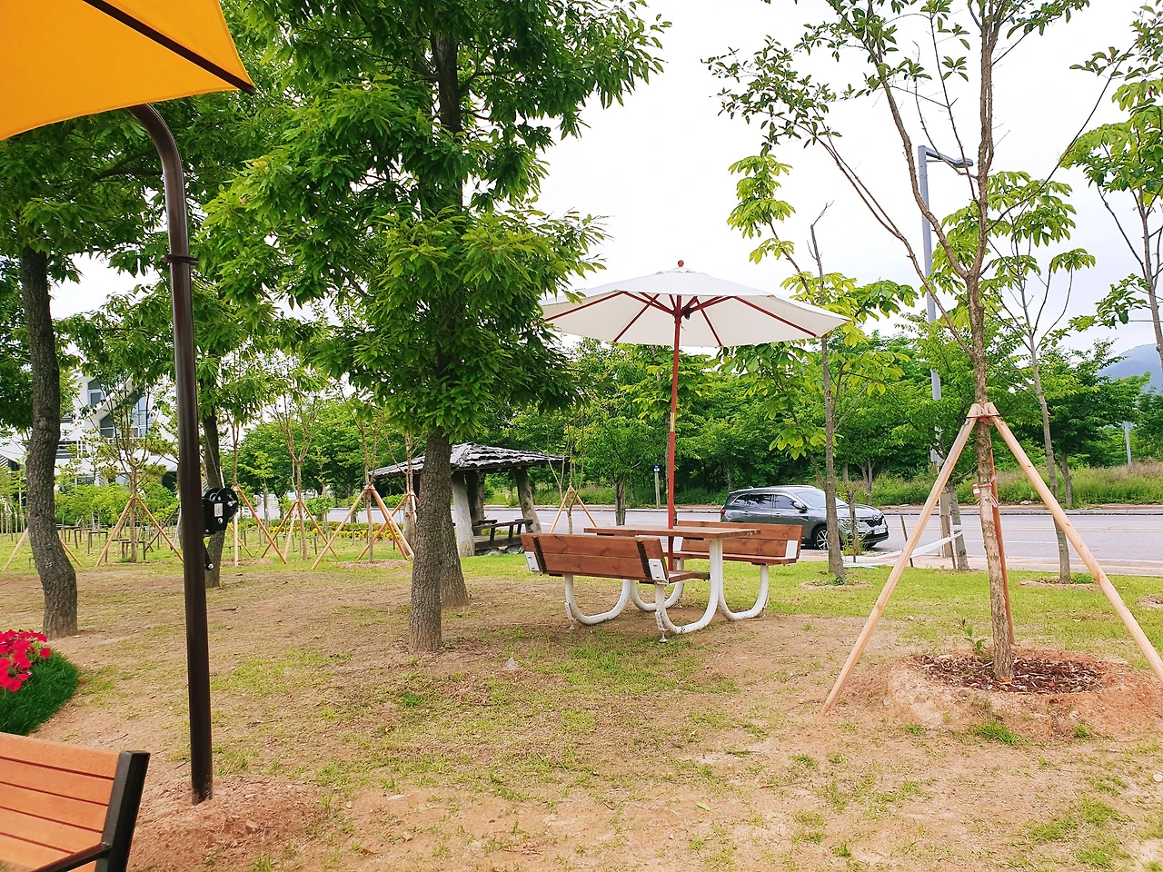 낮 12시 맨발로 걸으며 바라보는 주변 풍경은 한 폭의 그림이다. 운동하러 나오신 노부부, 과일 등을 나눠 드시고 계신 분들, 한가롭게 앉아서 책을 보고 있는 여성 등 그림 같고 예뻤다. 시간이 멈춘 듯한 그 자리에 내가 있다. 걷고 있다. 뇌가 쉰다는 건 이런 기분일까?