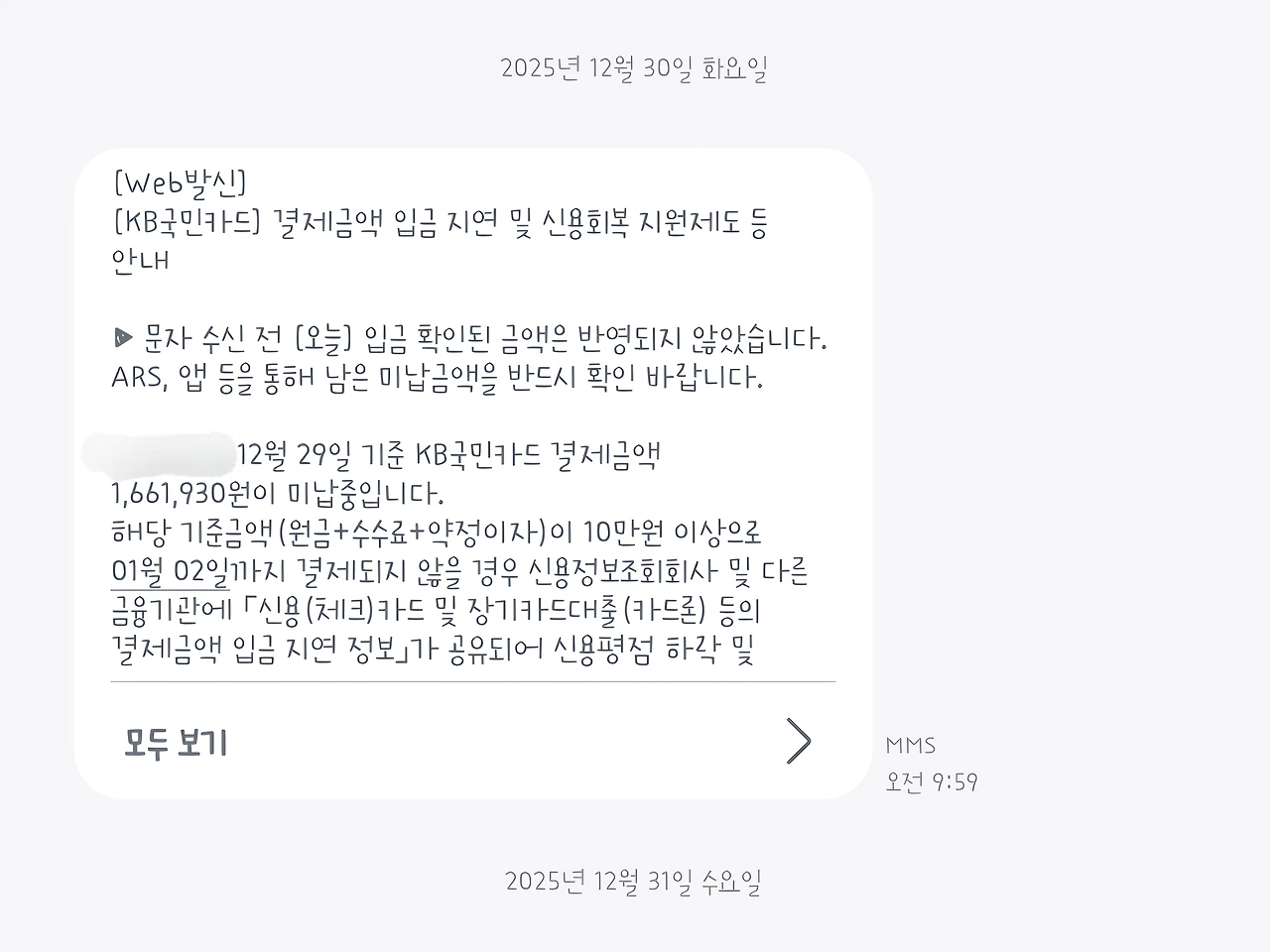 카드 대금 결제일이 하루 지나면, 약간의 연체금이 늘어날 뿐 특별한 일은 생기지 않는다. 어서 카드값을 납부해 주길 원하는 AI의 독촉 전화가 조금 성가신 것만 빼면 말이다. 이틀이 지나도 별 일은 생기지 않는다. AI 전화를 너무 받지 않으면 상담사가 전화가 온다는 것 정도. (TMI를 하나 써보자면, 나는 아직도 휴대폰을 무음으로 해놓고 산다. 원래도 전화를 싫어했지만, 한동안 매월 말일만 되면 카드 대금 납부 독촉 전화가 하루에도 몇 번씩 왔던 게 트라우마로 남았다.) 그러다 3일, 4일쯤 지나면 카드대금을 연체했을 때 어떤 일이 벌어지는지에 대해 친절한 문자가 온다.