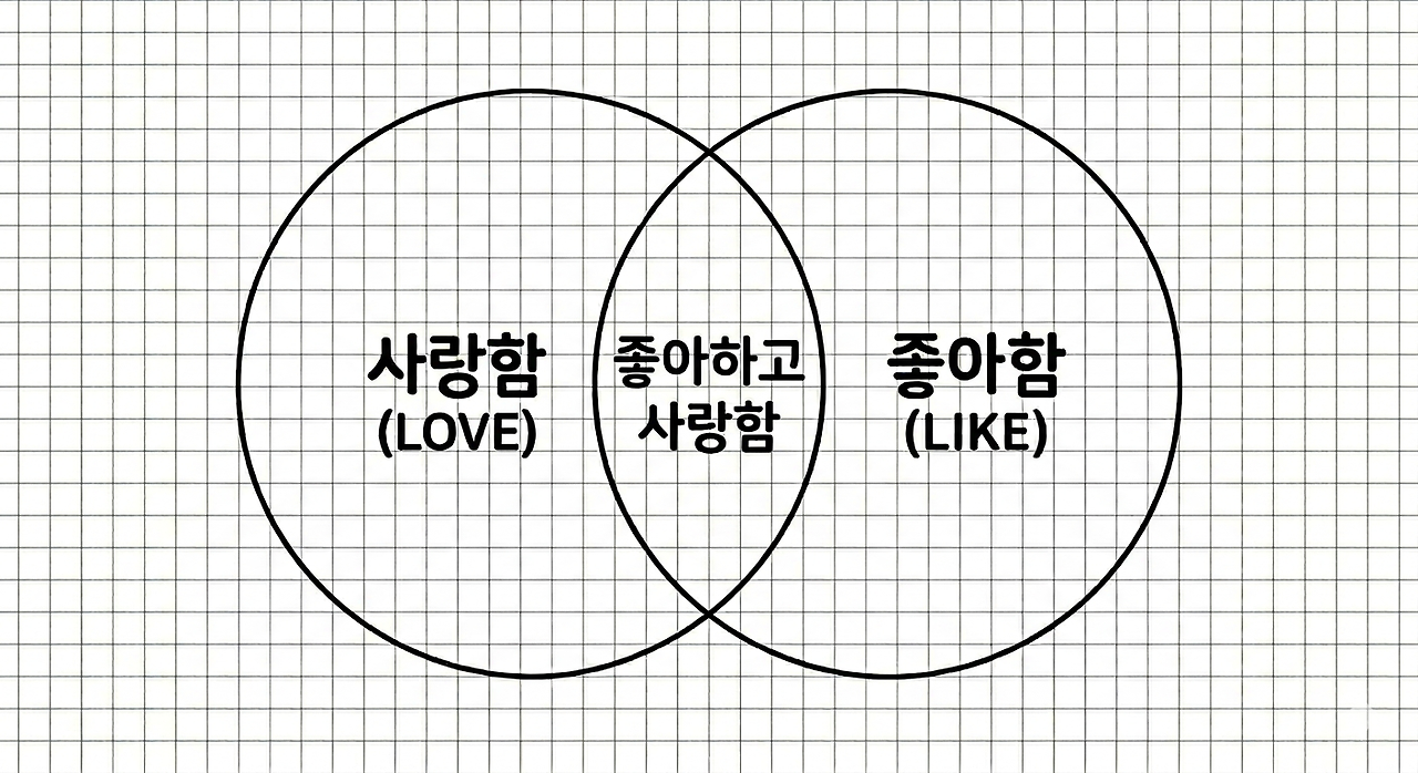 진짜 고통은 이 두 원의 교집합이 점점 줄어들 때 찾아온다. 사랑이라는 거대한 책임의 닻은 내렸으나, 도저히 그 존재를 좋아할 수 없을 때의 괴로움은 영혼을 갈라놓는다.