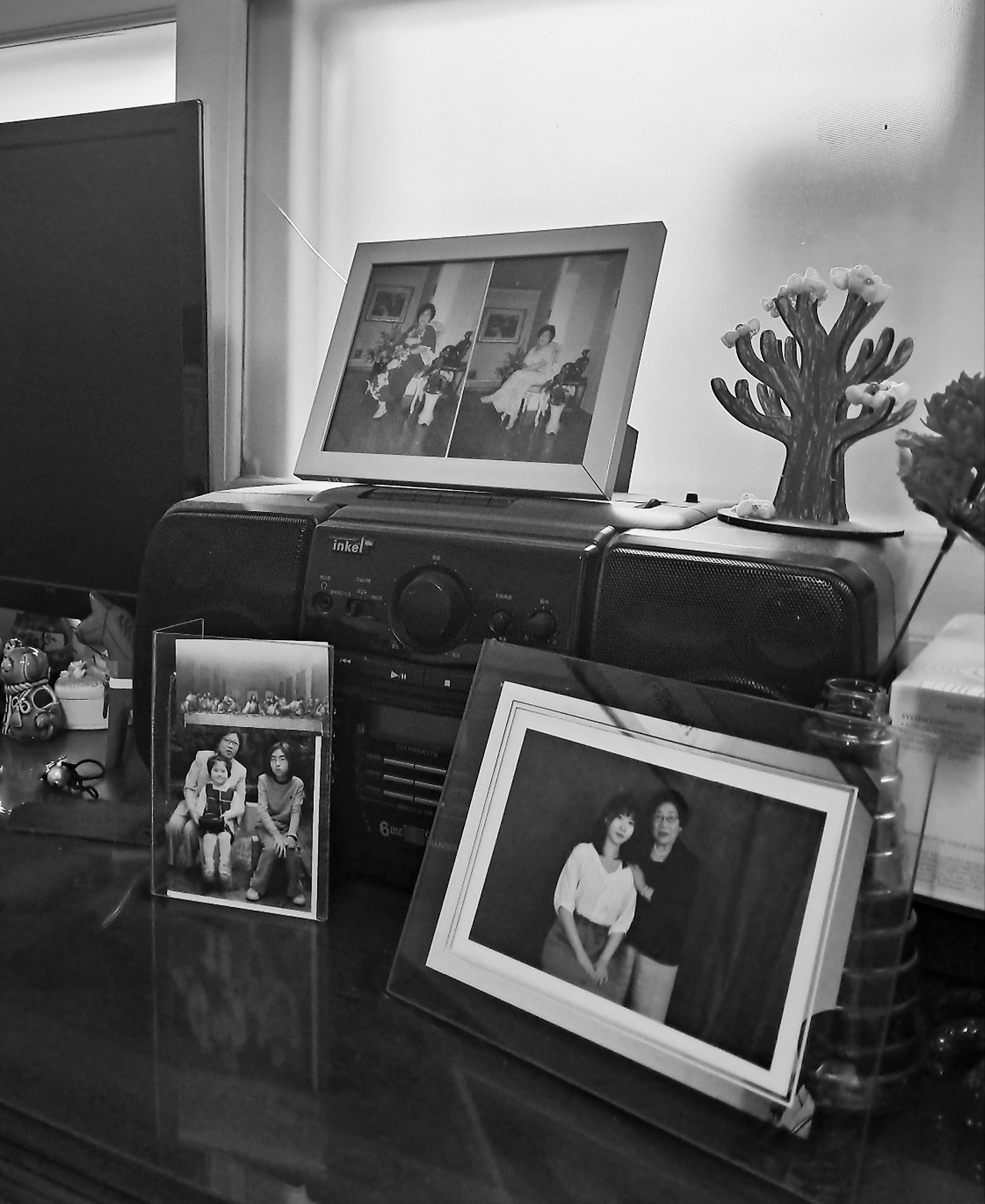 이제 라디오는 액자 뒤에 숨겨진 채, 존재가 희미해졌다. 할머니의 무릎에 앉을 정도로 작았던 액자 속 어린 손녀가 훌쩍 커버렸다. 시간을 증명하듯, 몇 년 전 찍은 할머니와 나의 모습이 한자리를 차지하고 있었다.