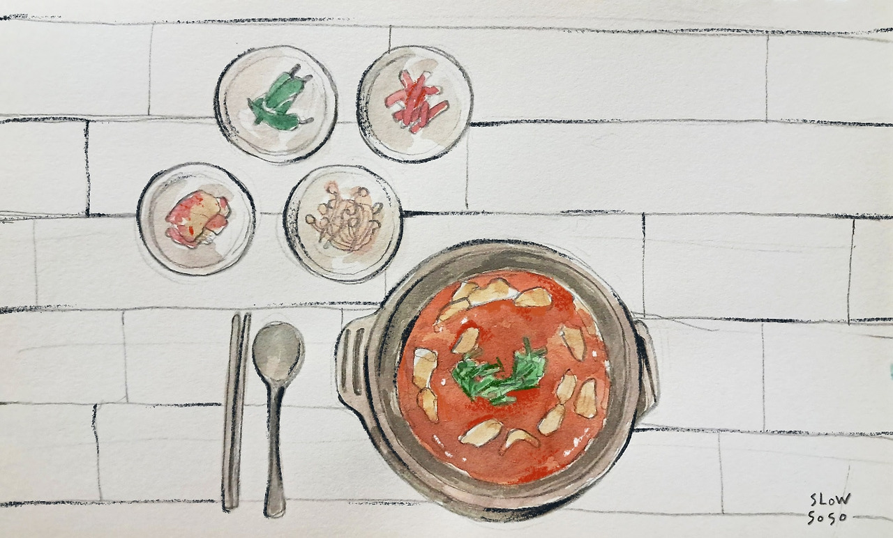 몇 장의 사진을 찍고 나서야 숟가락을 듭니다. 이런 시시콜콜한 대화가 맛있던 점심이였어요.