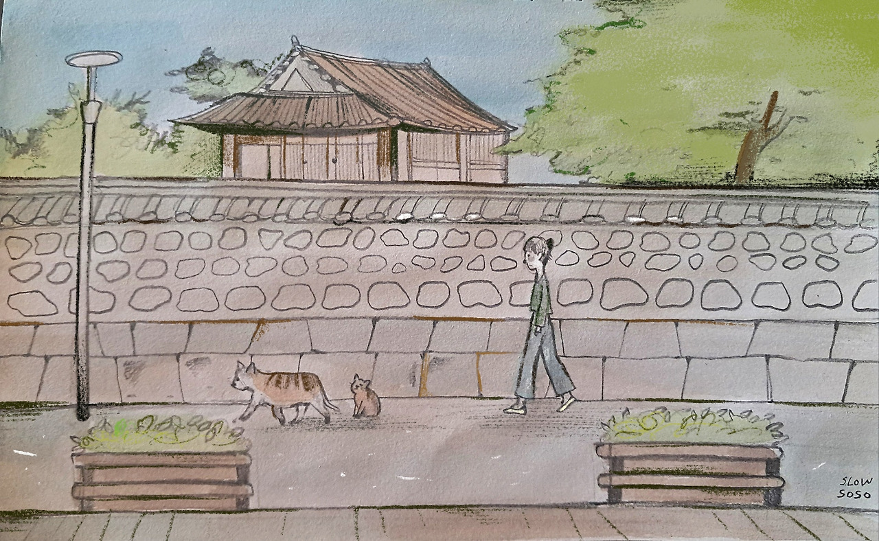 시간이 지날수록 타지에 대한 경계심이 줄어들었습니다. 좋은 여행을 하기 위해선 오래 머물며 친해지는 것도 중요한 부분이겠다고 느꼈어요. 꾸준히 보이는 기와지붕이 남아있는 두려움을 식혀준 것일 수도 있습니다.