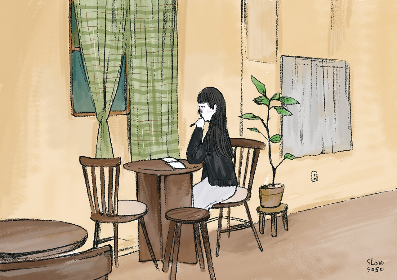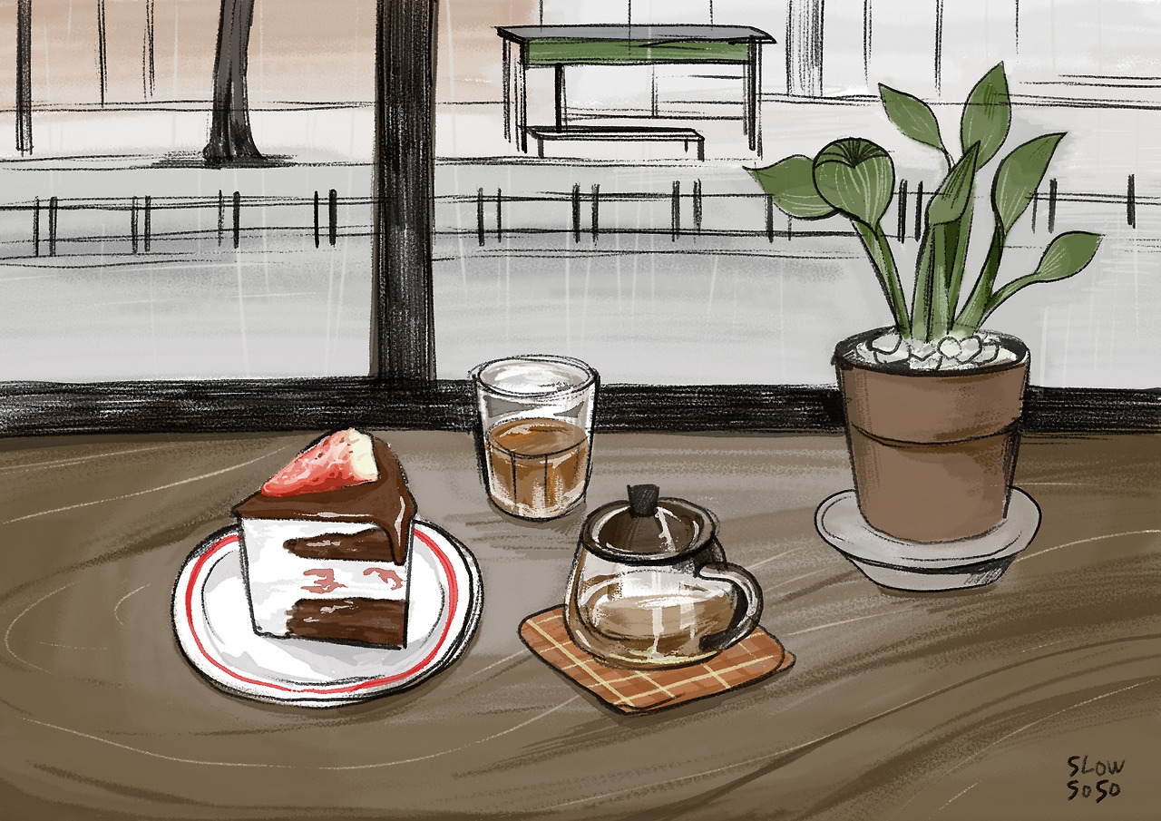 조심스레 전화기를 밀어 보니, 아늑한 카페가 나타났어요. 밖의 분위기와는 확연히 다른 공간이 펼쳐졌지요. 또 다른 9와 4분의 3 승강장을 만난 기분이랄까요. 타이밍 좋게 딱 한자리가 비어 있습니다. 제가 좋아하는 창문 옆 자리 였어요. 자리에 앉아 오늘의 마음을 간단히 적어봅니다. 달달한 냄새가 풍겨와 웃음이 지어졌어요. 청주에서의 초저녁은 이렇게 따스하 흘러갔습니다.