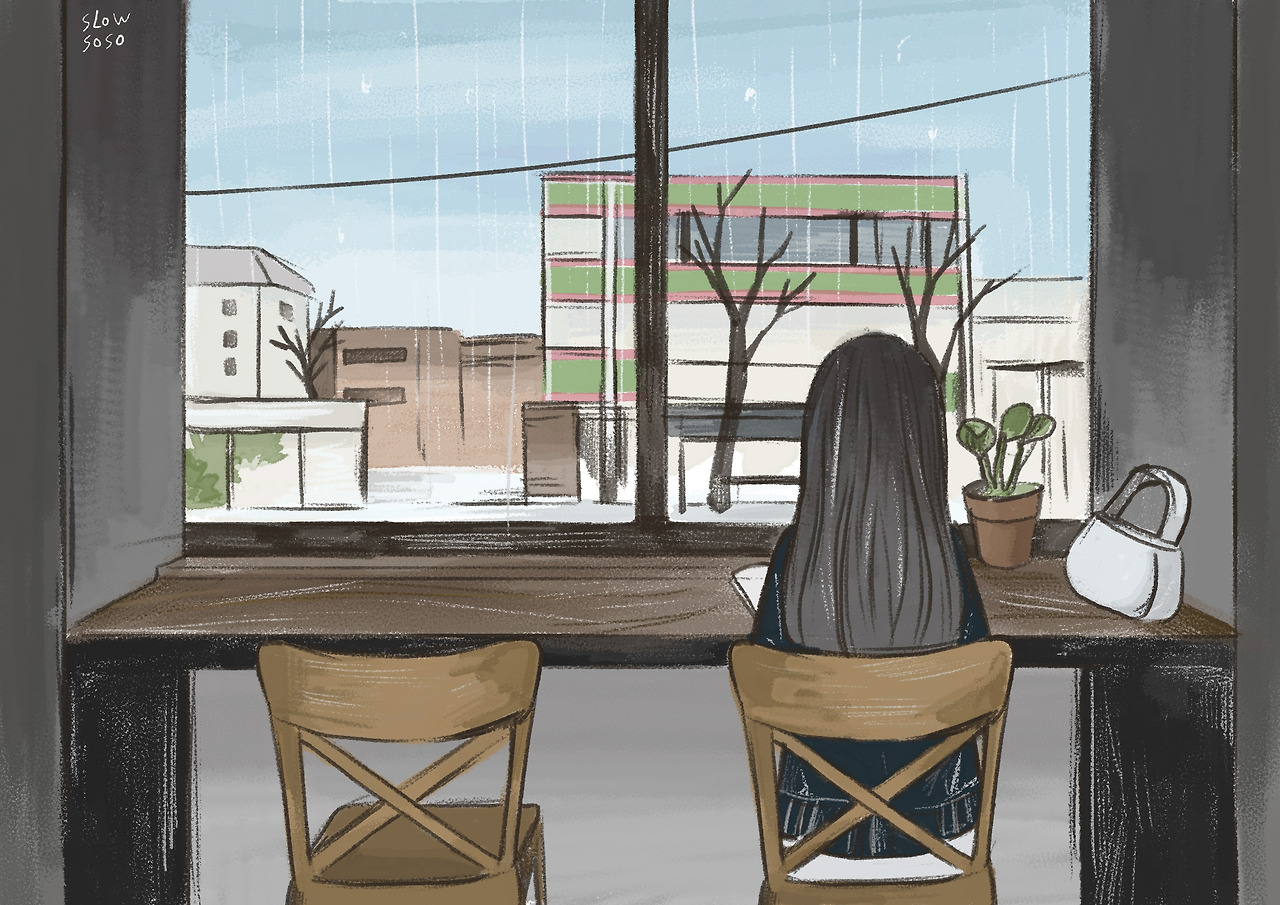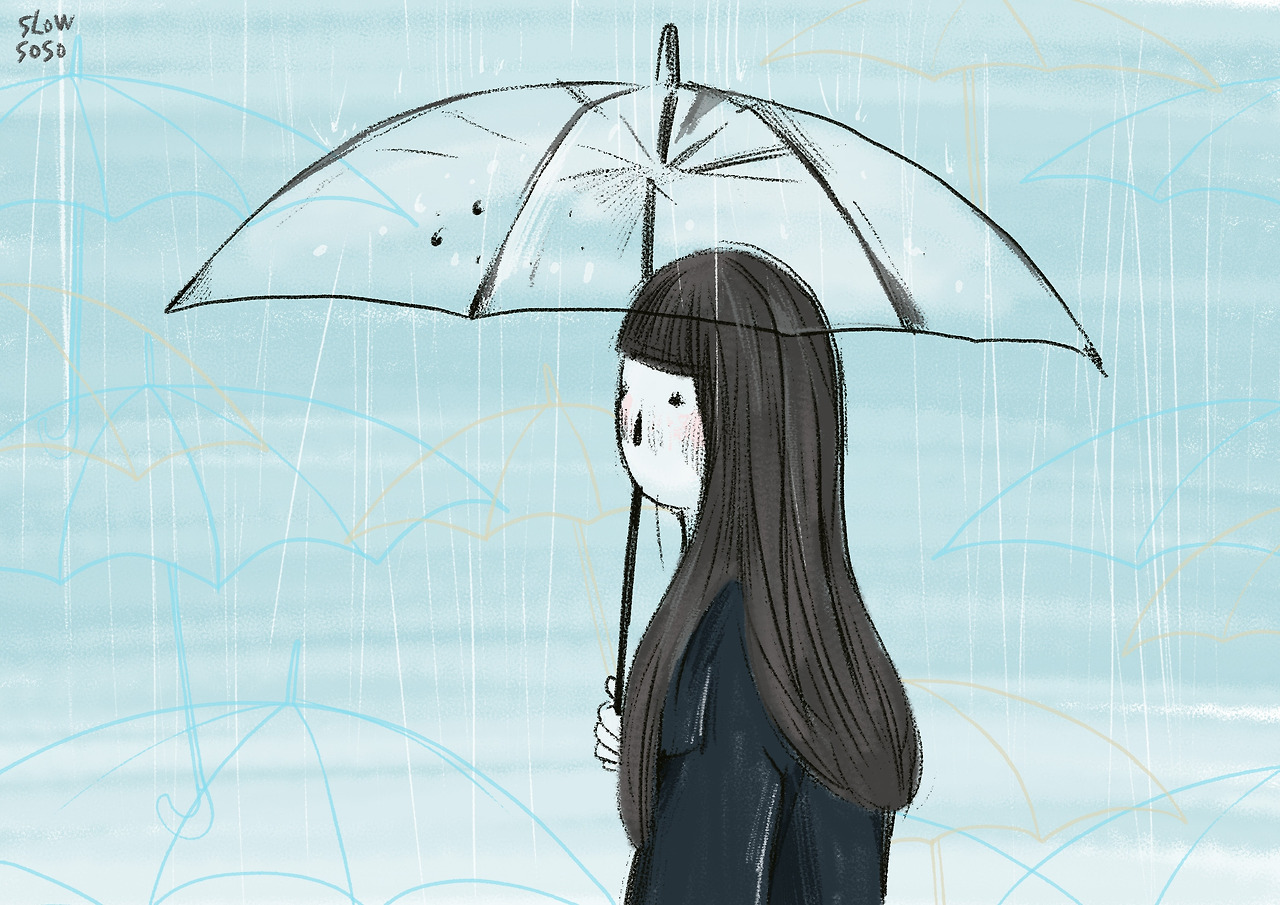 3월 초, 드문드문 비가 내립니다. 밖에 나와 우산을 펼치니 흐린 구름이 가득해요. 선선한 공기가 몸을 파고들까 목도리를 꽉 조여봅니다. 길을 가며 나름의 즐거움을 찾아봐요. 투명 우산을 쓰면 내리는 비를 볼 수 있어서 좋습니다. 딱 붙은 빗방울을 보면 우산 하나로 보호받고 있다는 생각에 안정감이 들어요. 새어 들어오는 비까지 막을 수는 없지만, 그 정도는 받아낼 수 있지요.