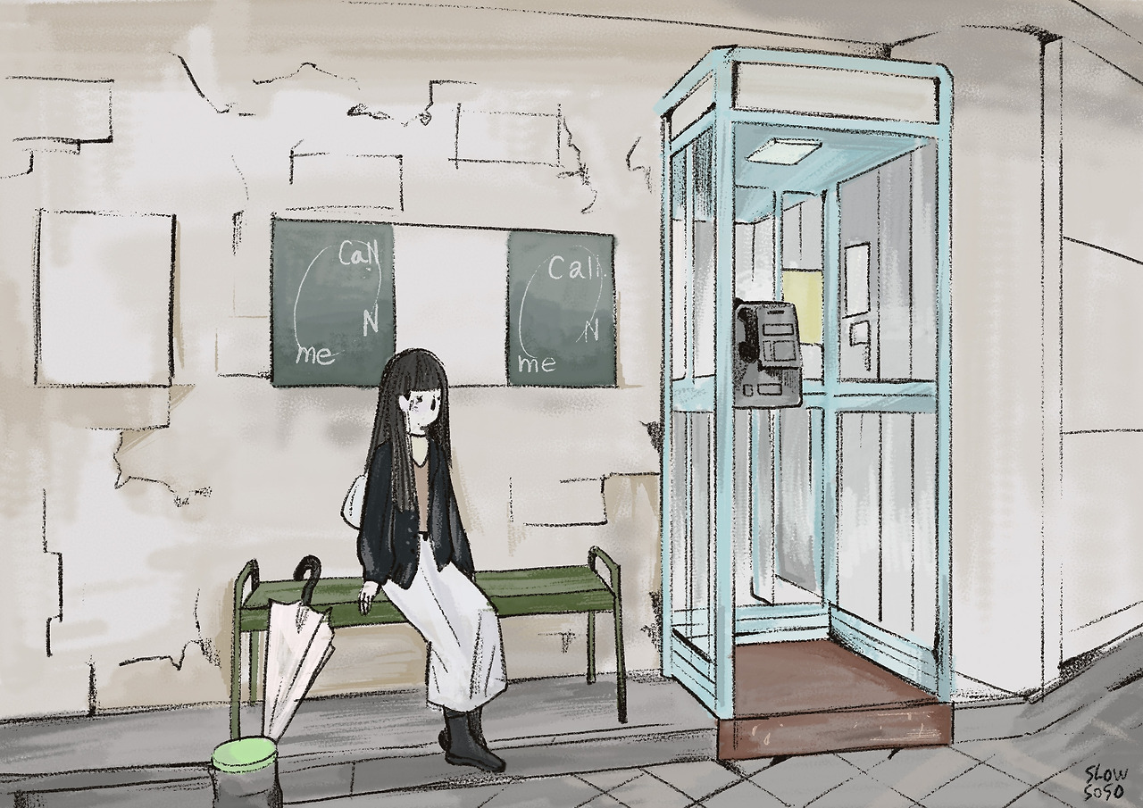 다음 목적지를 위해 정리를 하고 서둘러 밖으로 나왔어요. 버스를 기다리며 지도를 보는데, 아무리 생각해도 외진 곳이라 혼자 걸어가기가 힘들 것 같았습니다. 일단 타려고 했던 버스에 올라타 터미널 주변에서 내렸습니다. 발길이 닿는 대로 가다 보니 조금 멀리 걸어오게 되었어요. 아무래도 동떨어진 곳에 온 것 같아 되돌아가려는데 공중전화 부스가 보였습니다. 그냥 지나치기에는 평범한 공중전화 같지 않습니다. 전화기에 '미시오'라는 글자가 적혀있어요.