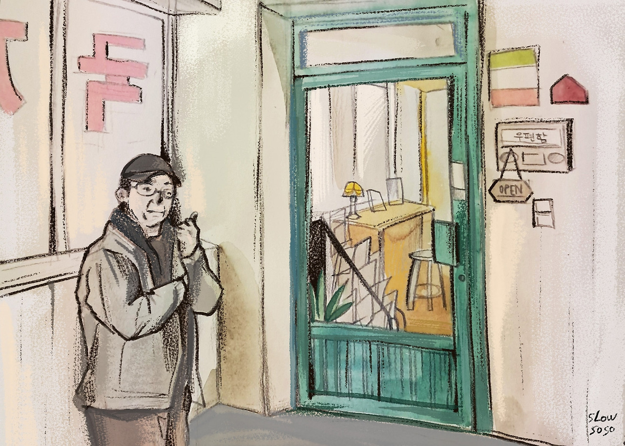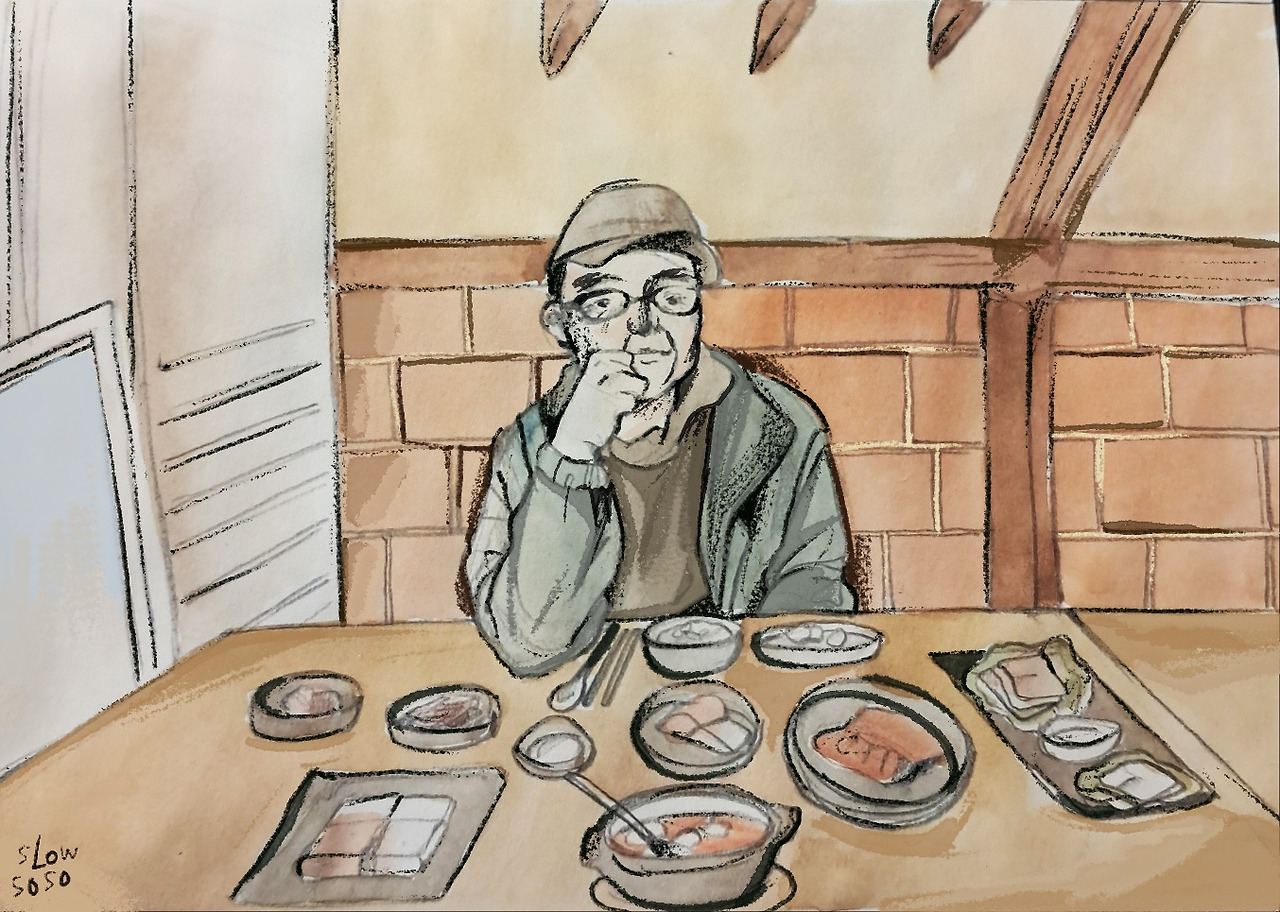 강풍주의보에도 식당은 만석이었어요. 구수한 청국장 냄새가 퍼지고 이내 한 상 가득 채워졌지요. 가장 먼저 눈에 들어온 건 수육입니다. 판판한 상추 위에 고기 두 점을 깔고 새우젓을 얹어 무말랭이를 곁들입니다. 또 넣을 게 없을지 살펴보며 이것저것 추가하다 보면, 한입에 먹기에 조금은 벅찬 크기가 돼요. 그렇게 싼 '쌈'에는 정성과 사랑이 담겨있습니다. 아빠에게 이런 쌈을 싸준 적이 있던가요. 퉁명스럽게 쌈 하나를 건네니 그대로 받아먹는 아빠입니다.