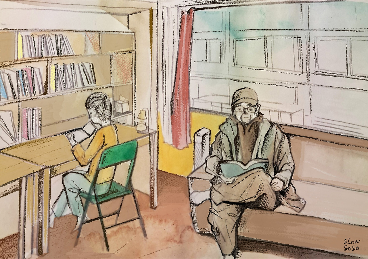 방 곳곳을 살펴보니 여러 흔적이 묻어있습니다. 책장 구석에 작은 유리병과 메모지, 볼펜이 놓여 있었어요. 추천하고 싶은 책과 이유를 쪽지에 적어 넣고, 다른 누군가 적어 놓은 쪽지도 꺼내 가는 거지요. 같은 공간을 머물다 간 사람들의 목소리에 귀 기울여봤어요. 누군가에게 닿길 바라며 유리병 안에 흔적을 숨겨둡니다.