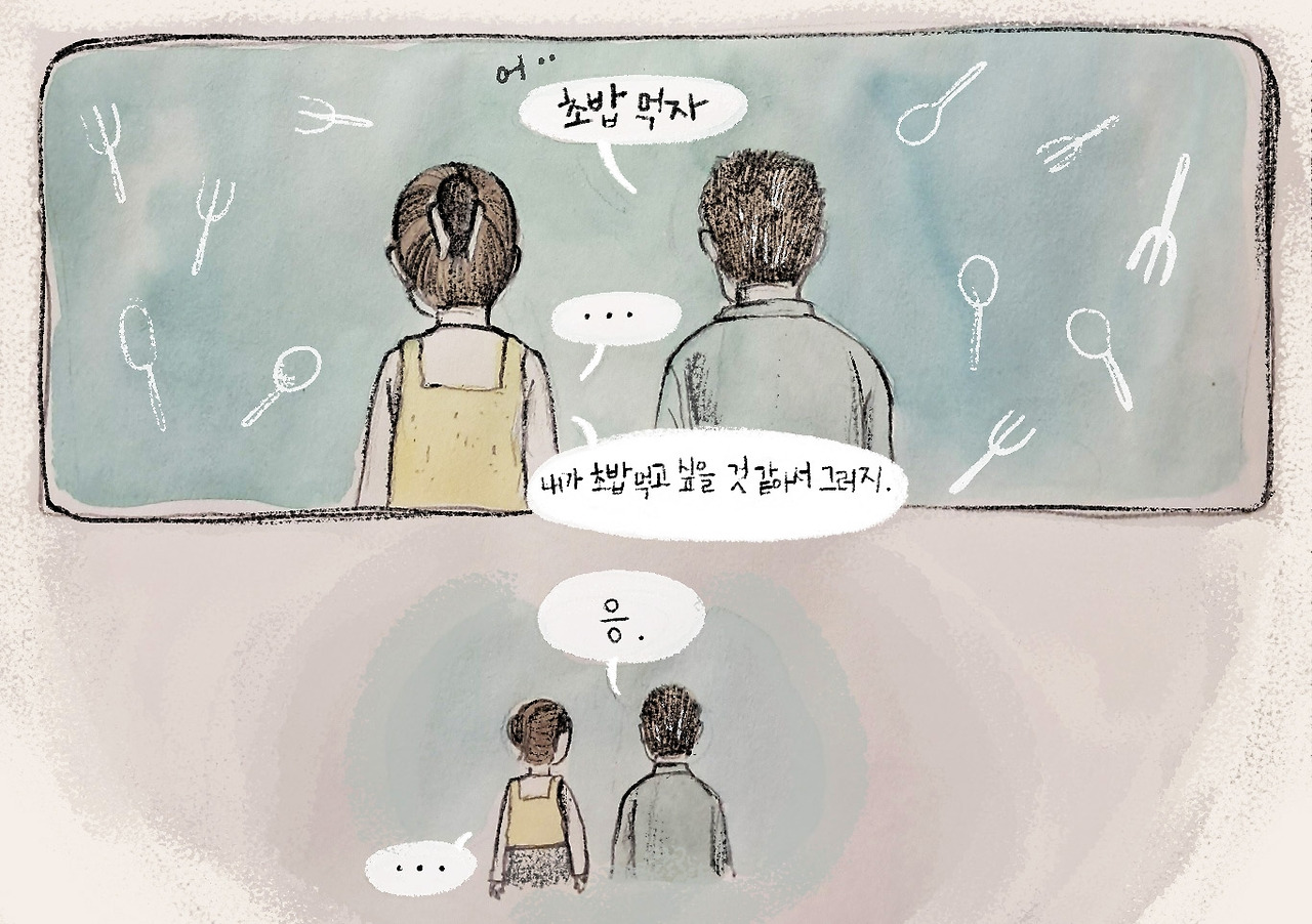 누군가에게서 안 좋은 부분이 보이면 사실 자기와 비슷한 부분인 경우가 있다고 하더라고요. 가끔 눈치 보는 아빠를 보면 속상해서 되레 화가 나요. 그러다가도, 때로 제 모습에서 아빠를 봅니다. 아빠와 닮아있는 저를 발견해요.