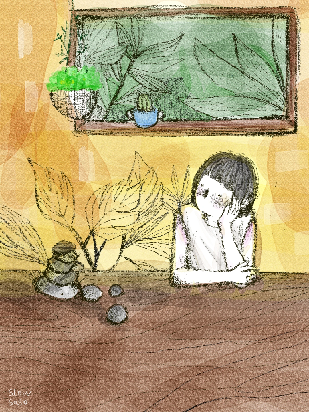 이제 엄마를 향한 상자 안에는 나도 모르는 돌들이 한가득 쌓여있게 됐다. 늘 먹고사는 게 고민이 되었던 당신에게 좋은 것 하나 주지 못했다는 미안함이다. 솔직하게 말하면 쏘아대지는 않을 것을, 들키고 싶지 않아 항상 자존심이라는 가면을 썼다. 지금 이 시기에서 내가 배우고 있는 건 기다림일 거라고, 나를 다독이는 게 꼭 핑계가 아닌가 싶어 탓하던 참이다. 빨리 출세하라는 말에 괜한 소리를 친 건, 그러고 나서 곧장 후회를 한 건 겹겹이 쌓인 돌 중 일부다. 내가 만든 돌의 일부.