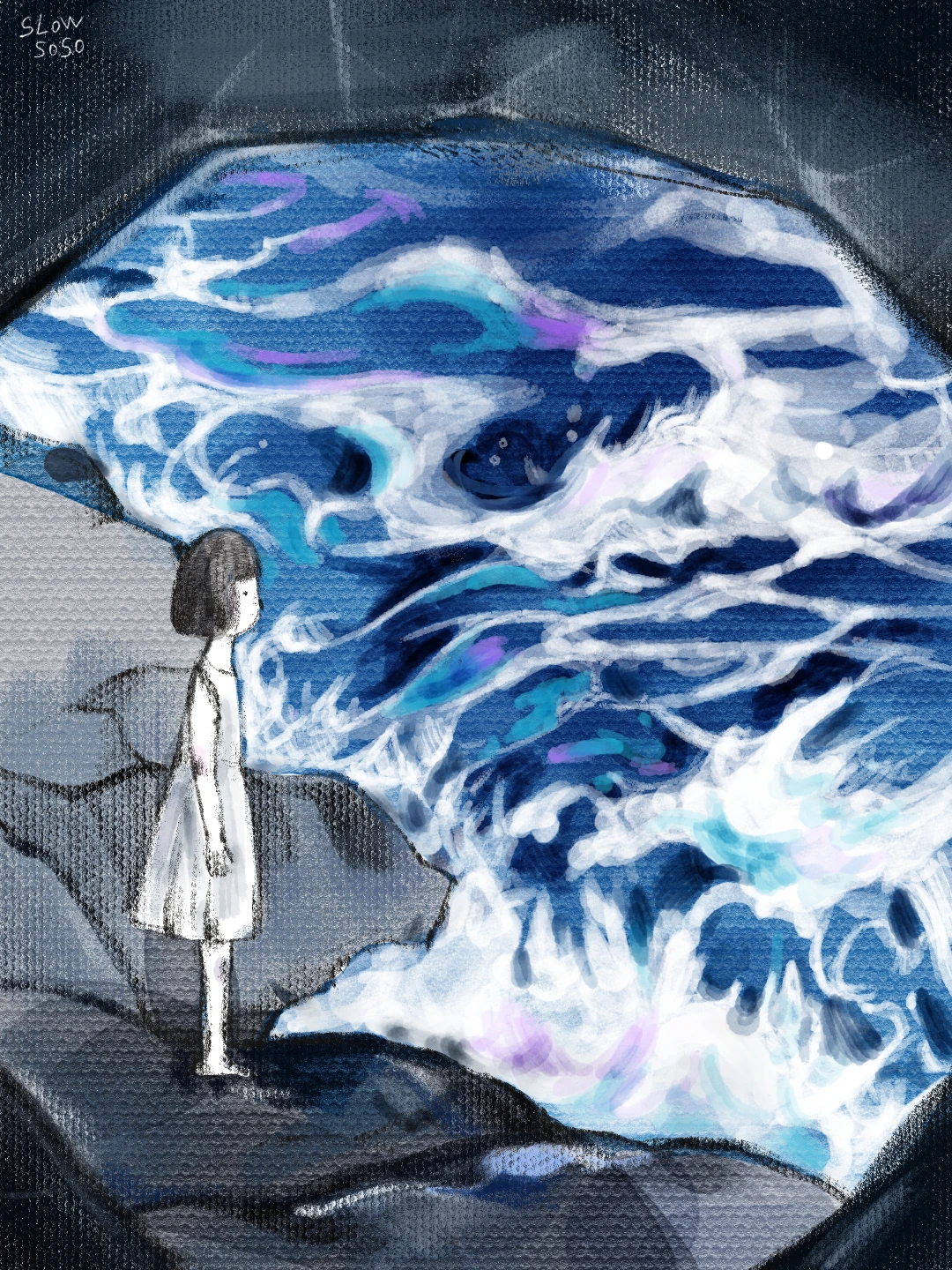 높은 가림막으로 둘러싸인 공터, 넓고 깊은 바다 한가운데. 이런 곳이 무섭다. 마치 홀로 서 있는 나를 잡아먹을 듯한 기분- 그런 광활함이 공포로 다가왔다. 이와 비슷한 느낌은 평범한 일상을 보낼 때도 문득 올라오곤 했다. 단순히 외로울 때. 마음을 가지고 있어서 때로 외롭다는 생각이 들 때 내 속은 고요해졌다. 하루 끝에서 던지는 질문이 의문이 될 때 나는 아무도 없는 바다로 나를 끌고 갔다. 마음 안에서 거세게 치는 파도는 소리가 없었다.