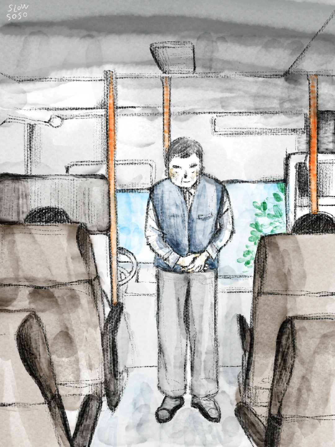 에어컨도 턱없이 부족한 폭염. 기사님의 이마는 송골송골 맺힌 땀방울이 가득하다. 손수건으로 땀을 닦으며 고개를 숙여보지만, 사실 승객은 별 반응이 없다. 나 역시 마찬가지이다. 대신 기사님의 얼굴을 소심하게 바라본다. 약간의 눈 맞춤 후에 천천히 움직이기 시작하는 창밖으로 고개를 돌린다. 몇십 년간 반복해 온 업무일 텐데, 형식을 넘어 존중이 느껴지는 인사가 참으로 멋졌다.