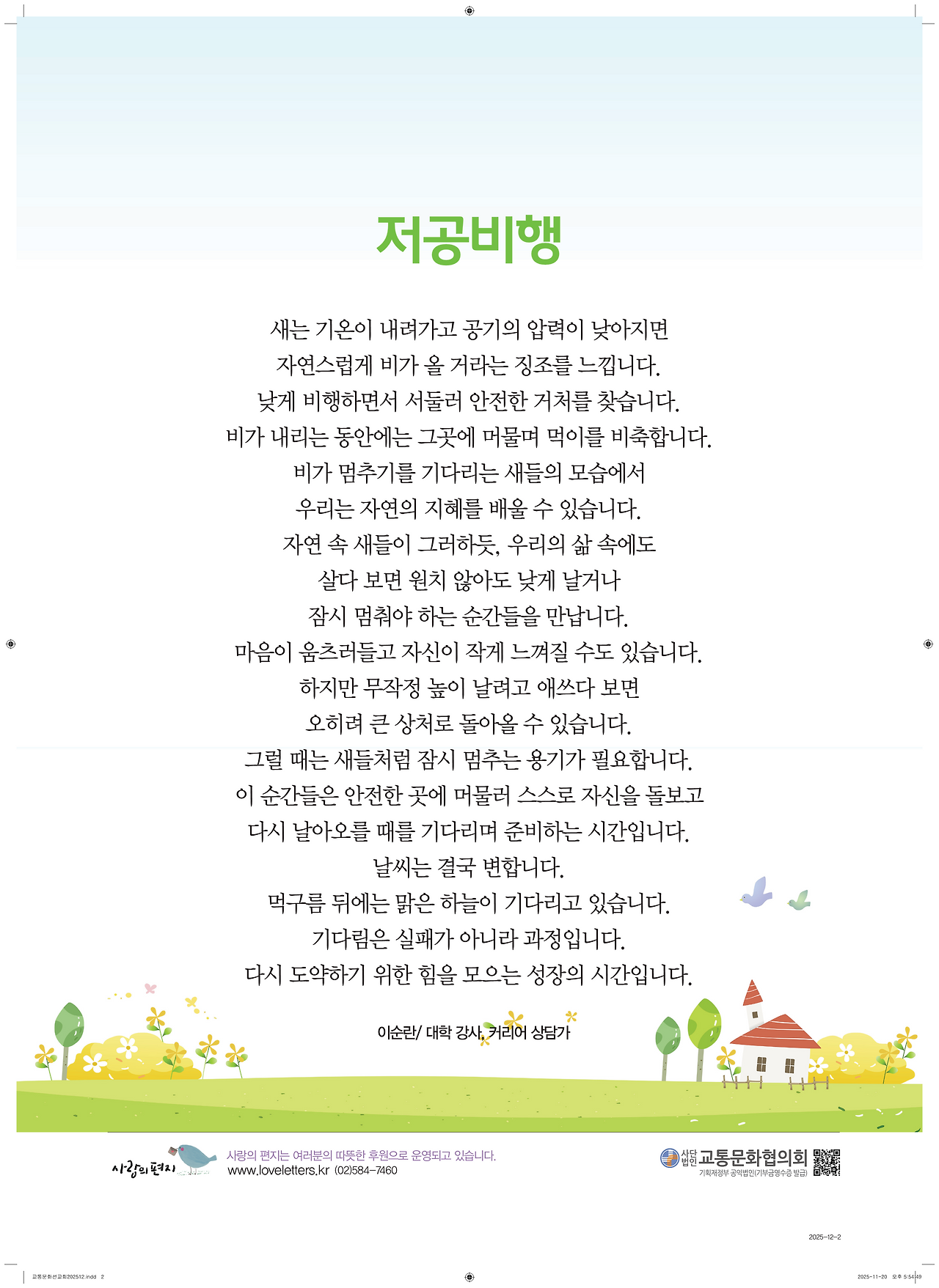 새들이 비를 피해 낮게 비행하며 안전한 곳을 찾듯이,