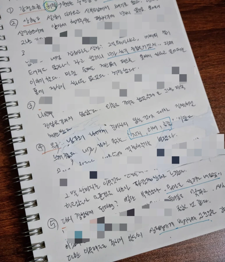 그때의 상황과 말을 다 메모해 두었다. 아이들에게 양해를 구한뒤 말을 녹음하거나 아이의 말을 적는 행위들을 한다. 일상을 관찰하는 것이 글을 쓰는 목적이기도 하다. 그 덕에 타인의 감정을 복합적으로 바라볼 수 있게 되었다.