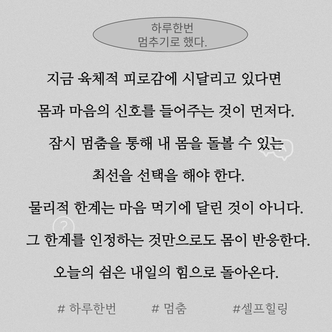 잠시 멈춤을 통해 내 몸을 돌볼 수 있는 최선을 선택을 해야 한다.