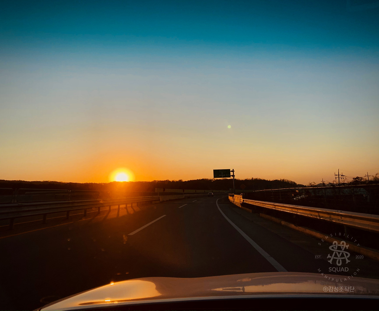 지평선에 걸린 석양과 텅 빈 곡선의 도로가 내 시선과 맞닿았다.
