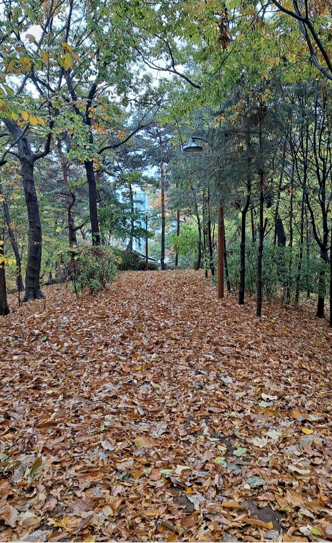 푹신한 ‘낙엽 동산’에 잠시 앉아본다. 또 한 차례의 가벼운 바람에 나뭇잎들이 저항 없이 떨어진다. 그렇게 불어주는 바람이 좋다. 낙엽 향기 짙게 배인 바람 냄새, 바람을 타고 정처 없이 가는 가을 나뭇잎, 나의 친구들. 나의 내면과 깊이 소통하고 공감하며 위안이 돼주는 아프고도 감미로운 가을, 가을이다.