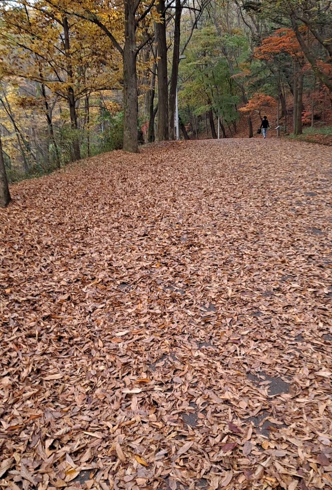 다른 한 곳에 이른 나는 걸음을 떼지 못한다. 허리를 굽히고서 한참을 내려다본다. 떨어진 잎사귀들이 이토록 매혹적이라는 데에 감동한다. 곱디고운 단풍잎들로 엮은, 세상에 단 하나뿐인 카펫이 펼쳐져 있다. 내게 이토록 고급스러운 카펫이 생긴다면 사용하지 못하고 곱게 모셔두기만 할 것 같다.