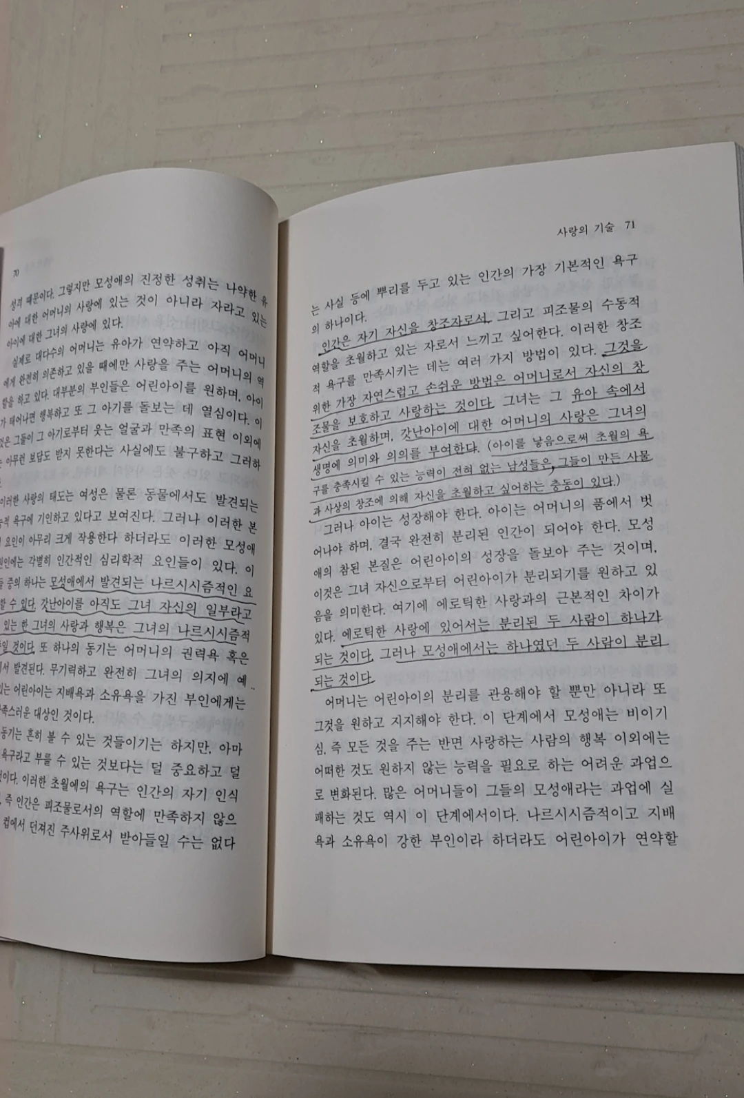 독일 출신의 정신분석학자이자 사회심리학자인 에리히 프롬의 <사랑의 기술>은 잘 알려진 책이어서 재목 정도는 들어본 사람이 많을 줄 안다. 나 역시 ‘사랑의 기술’에 대해 기술해 놓은 책이라는 것쯤은 알고 있었다. 책을 펼쳐보니 밑줄을 꽤 그어놓은 것으로 봐서 나름 열심히 읽었던 모양이다. 재미가 무 재미여서 지루함을 견디며 읽은 기억이 나는 것도 같다. 밑줄 그어진 부분을 옮겨본다.