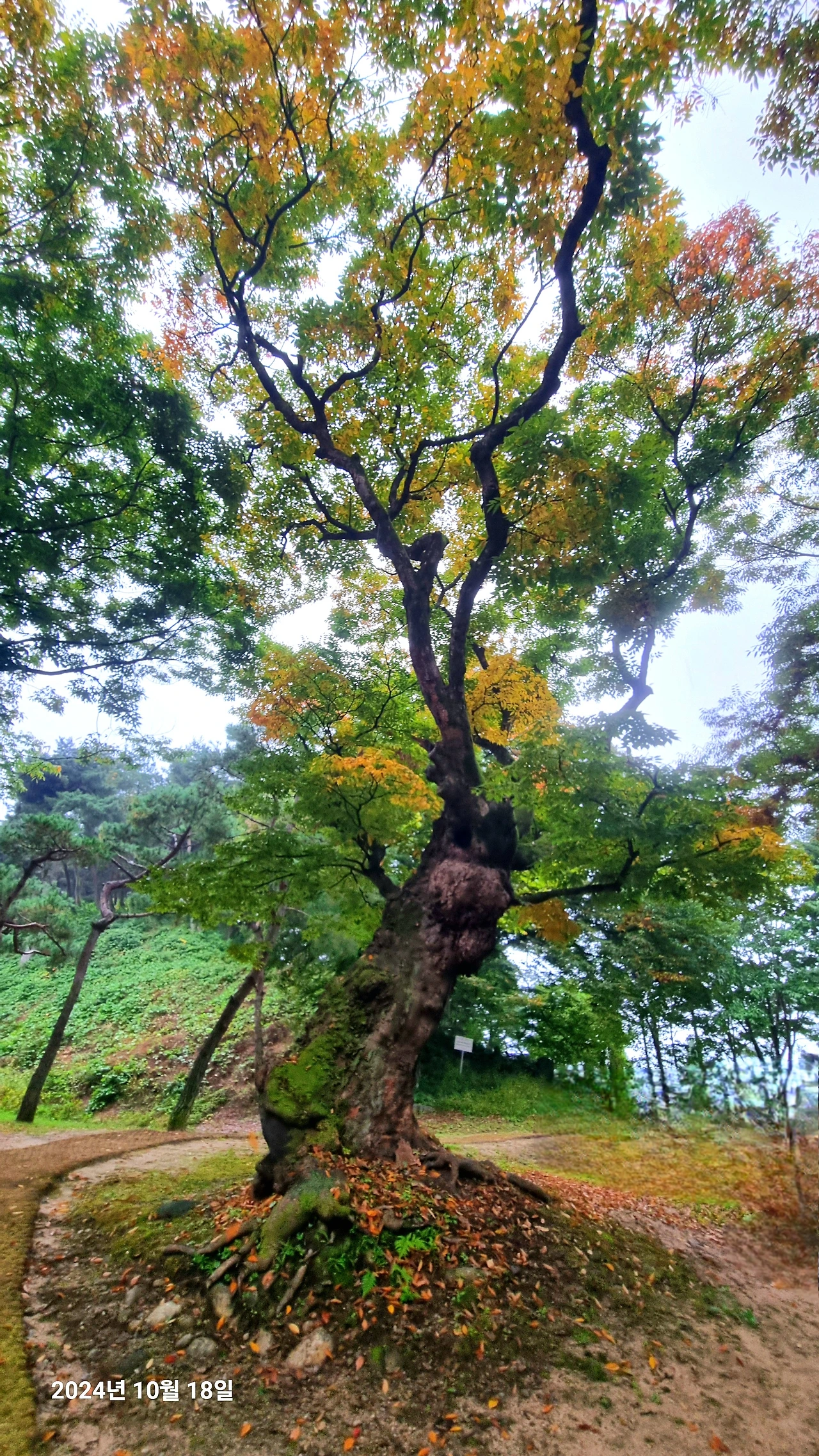 어깨를 겯고 모여있는 벚나무 중에 혼자 외따로 떨어져 있는 벚나무 하나가 내 눈에 박혔다. 다른 나무보다 일찍 물들어 가는 나무, 밑둥치가 근 100년은 살아온 듯 울퉁불퉁 상처가 많은 나무, 그러함에도 다른 나무의 허리춤에도 닿지 않는 나무, 굴곡의 세월과 거친 풍파가 차라리 견고해 보였다. 아니 견고한 척했으나 내 눈에는 안쓰러워 보였다. 그런 나무를 볼 때면 나는 사진에 담는다. 지금까지도 살아있는 모습이 너무 대견해서. 아니 어쩌면 이 모습이 마지막일 것 같아서, 오늘도 나는 그 나무 앞에서 이리저리 앉아서 또는 서서 나무를 사진에 담았다.
