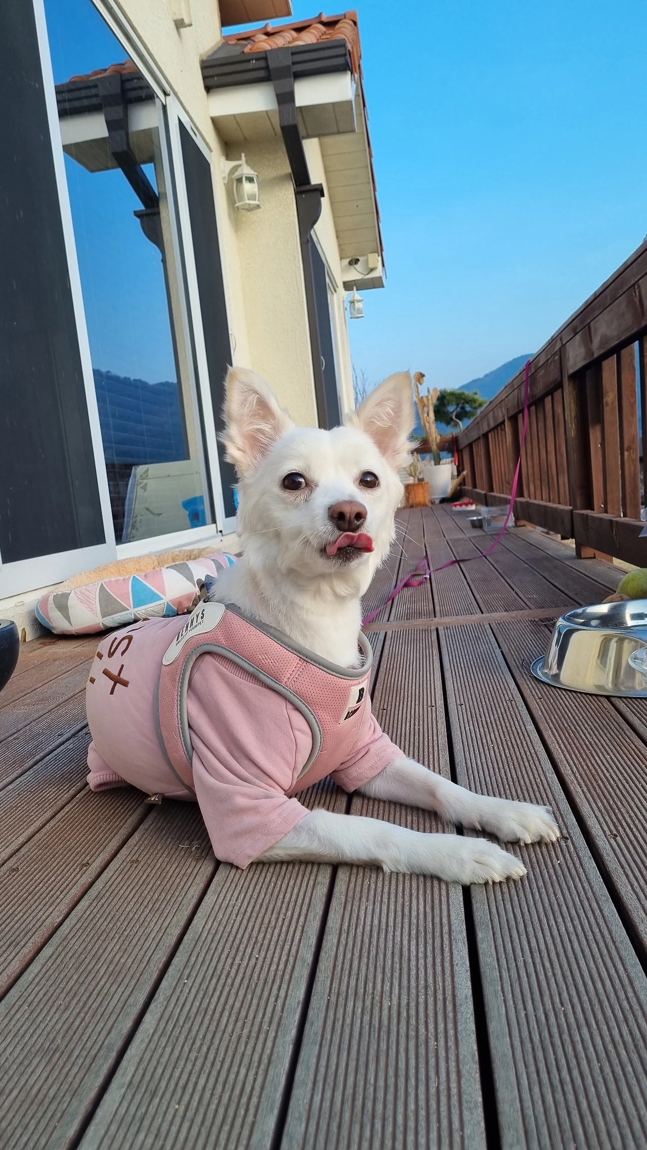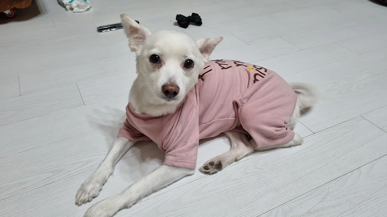 바깥에서 키우던 강아지를 민지가 데리고 왔다.