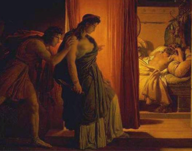클뤼타임네스트라는 큰 딸의 복수를 위해 정부 아이기스토스와 함께 남편 아가멤논을 살해한다.