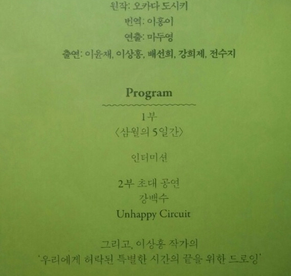 ※ 주의: 이 리뷰에는 연극 <룸넘버13>,<취미의 방>, 뮤지컬 <담배가게 아가씨-시즌2> 등