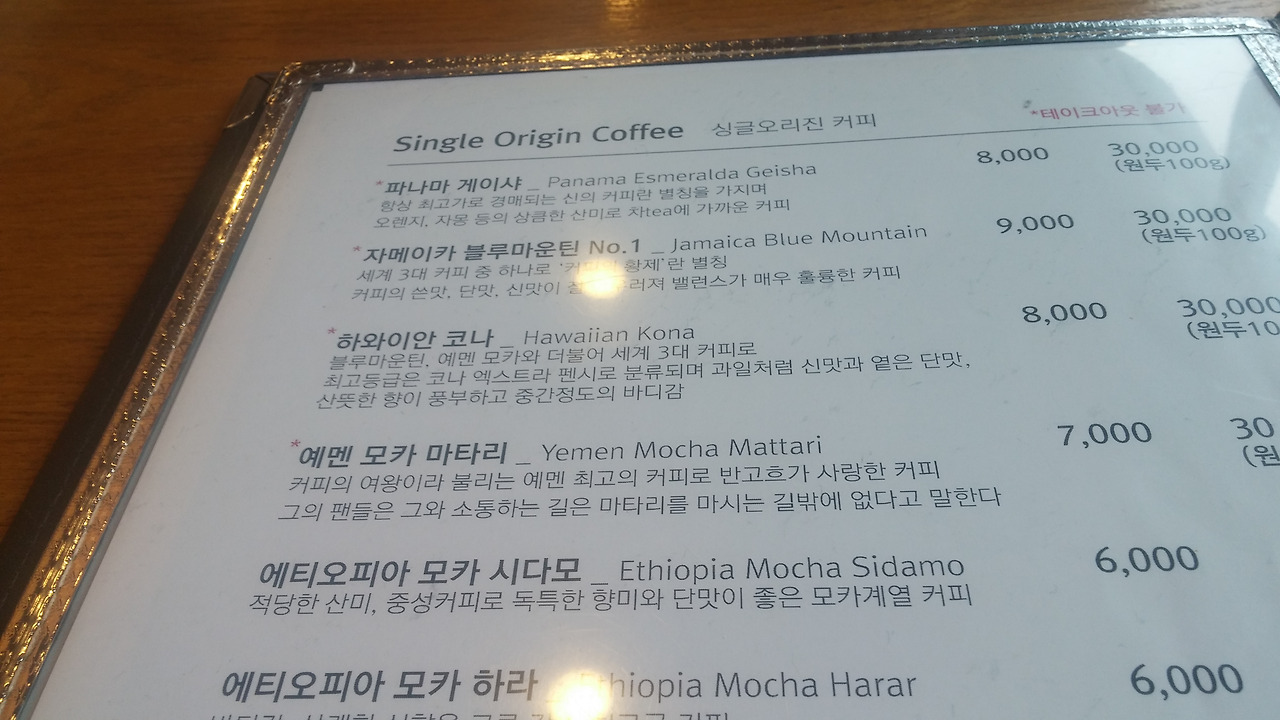 주문은 테이크 아웃이 불가능하다는 싱글 오리진 커피(핸드드립 커피)로 했는데, 매우 만족.