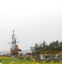 용머리로 들어가는 입구에는 한 척의 배가 있는데, 제주에 표류한 하멜을 기념하는 곳이다.