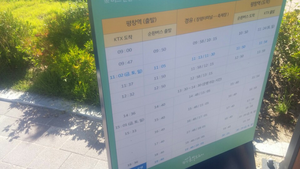평창역에서 장평터미널을 거쳐, 평창효석문화제 축제장을 오가는