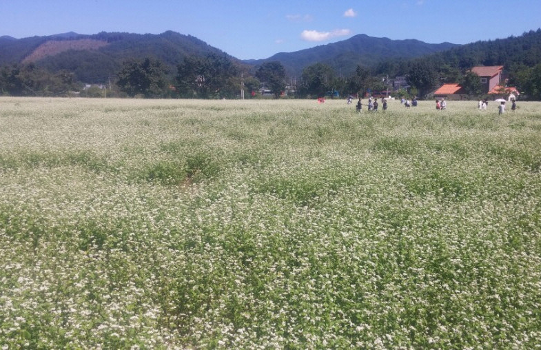 산허리는 온통 메밀밭이어서 피기 시작한 꽃이