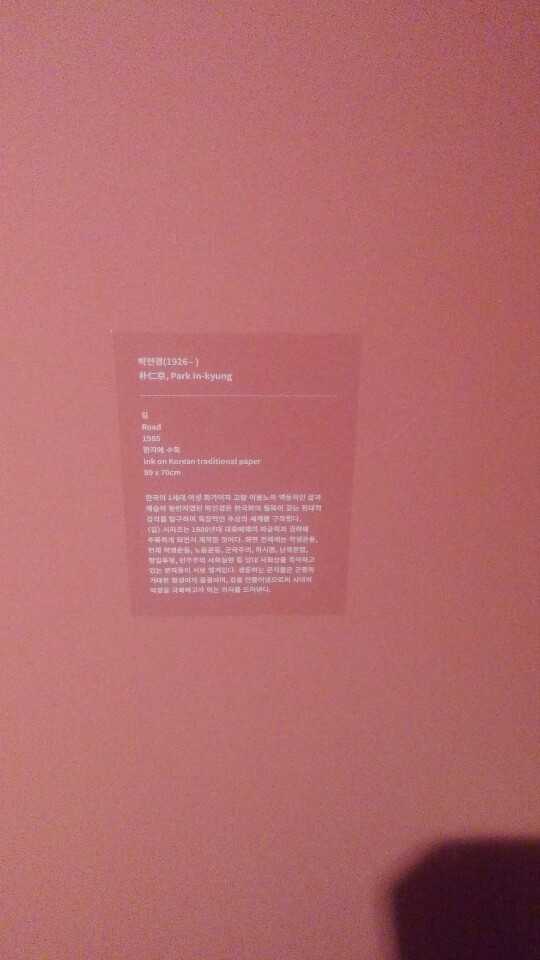 사실, 박인경 화백에 대해서는 동백림 사건에 휘말려 고국 땅으로 돌아오지 못한 남편 이응노 화백의 반려자 정도로만 기억하고 있었는데, 전시장의 설명문에 따르면 한국화의 필묵이 갖는 현대적 감각을 탐구하며 본인만의 독창적인 추상 세계를 구축한 화가였다고 한다.