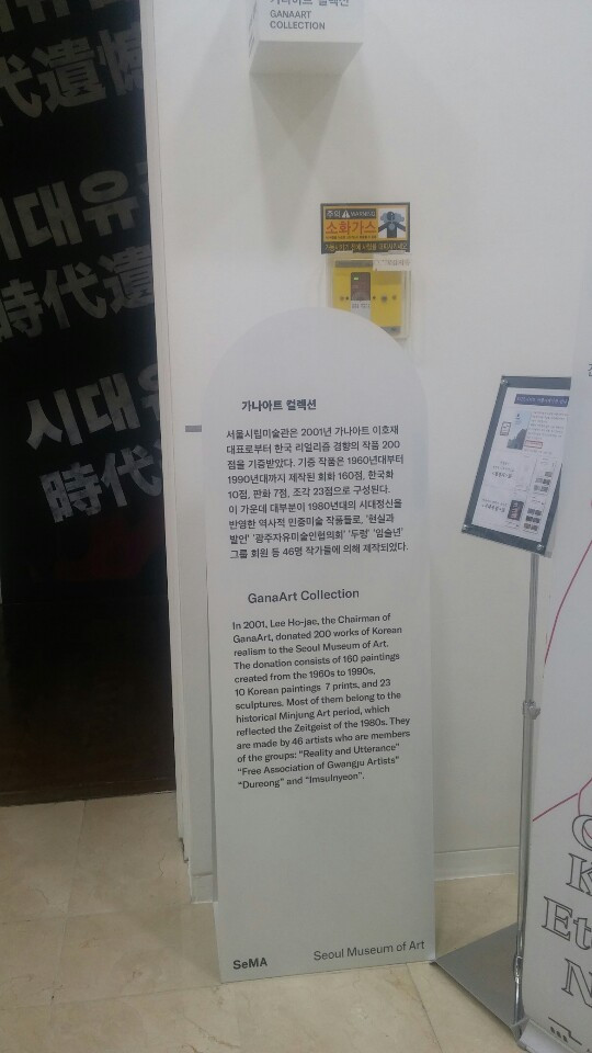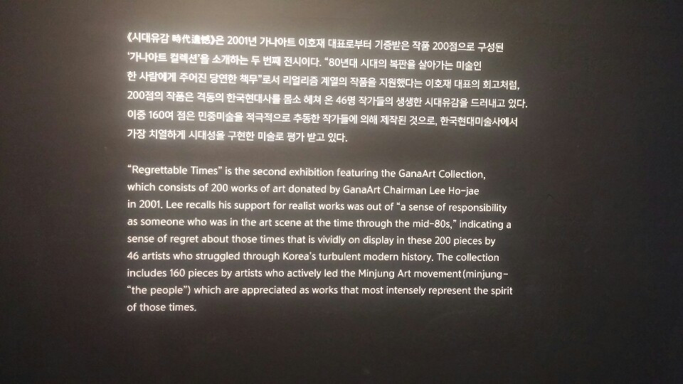 서울시립미술과의 상설전시 <시대유감>은 2010년 가나아트 이호재 대표로부터 기증 받은 200점의 작품으로 구성된 '가나아트 컬렉션'의 두번째 전시로 1970~1980년대의 민중미술을 소개하는 기획전이다.